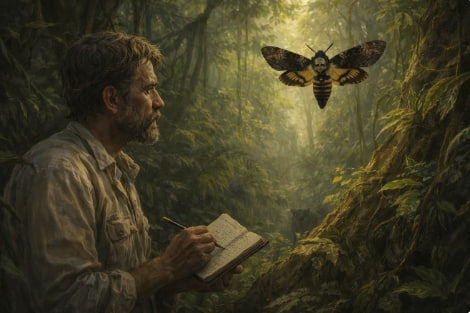 Сюжет рассказа Александра Беляева можно кратко сформулировать так: В 1912 году профессор Морель отправился в экспедицию в Бразилию. Охотясь за редкостной бабочкой, которую в народе называли «Мертвая голова» (размах крыльев у этого насекомого доходил до 1 метра), учёный заблудился в дебрях тропического леса и был обречён на смерть, но... Морель не сдался. Борясь за свою жизнь, Морель прожил один в тропическом лесу 15 лет. Звучит невероятно, но Беляев предположил, что такое возможно. Образ Мореля помогает верить в то, что человек способен выживать в любых условиях. Любовь к жизни – самая сильная любовь. Многие считают, что Беляев – автор подростковой литературы, но я до сих пор с удовольствием читаю фантастические рассказы и продолжу, потому что приключения на страницах книг помогают нам убежать от повседневной обыденности. Спасибо тем писателям, кто создал и создаёт для нас, эти замечательные и волшебные миры!