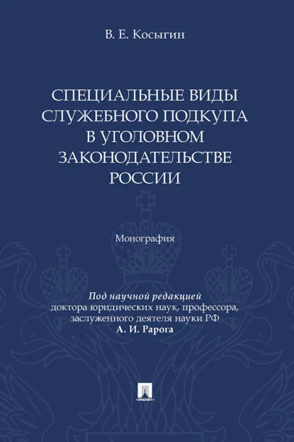 Монография посвящена актуальной проблеме – уголовно-правовому противодействию специальным видам служебного подкупа (ст. 2005, 2007 УК РФ). В ней исследованы понятие и виды подкупа, дана уголовно-правовая характеристика составов преступления, предусмотренных ст. 2005, 2007 УК РФ, сделаны предложения по совершенствованию уголовного законодательства РФ и практики его применения, приведены результаты проведенного социологического исследования (опроса практических и научных работников).