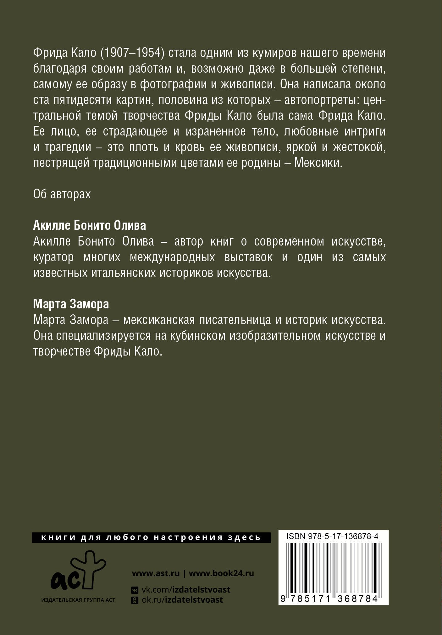 Великое искусство, рожденное через великую боль. Язык не поворачивается назвать сюрреализмом страдания на ее полотнах. Это нечто субъективное, выходящее за рамки популярного в то время стиля. Если эта книга дорогая по цене, то просто познакомьтесь с необычным творчеством Кало на просторах интернета, но помните, что авторы, посвящающие художникам свои труды, живут ими долгими годами, анализируют многие источники, проносят через себя факты их биографии и творчества, и в итоге, создают достойные книги.