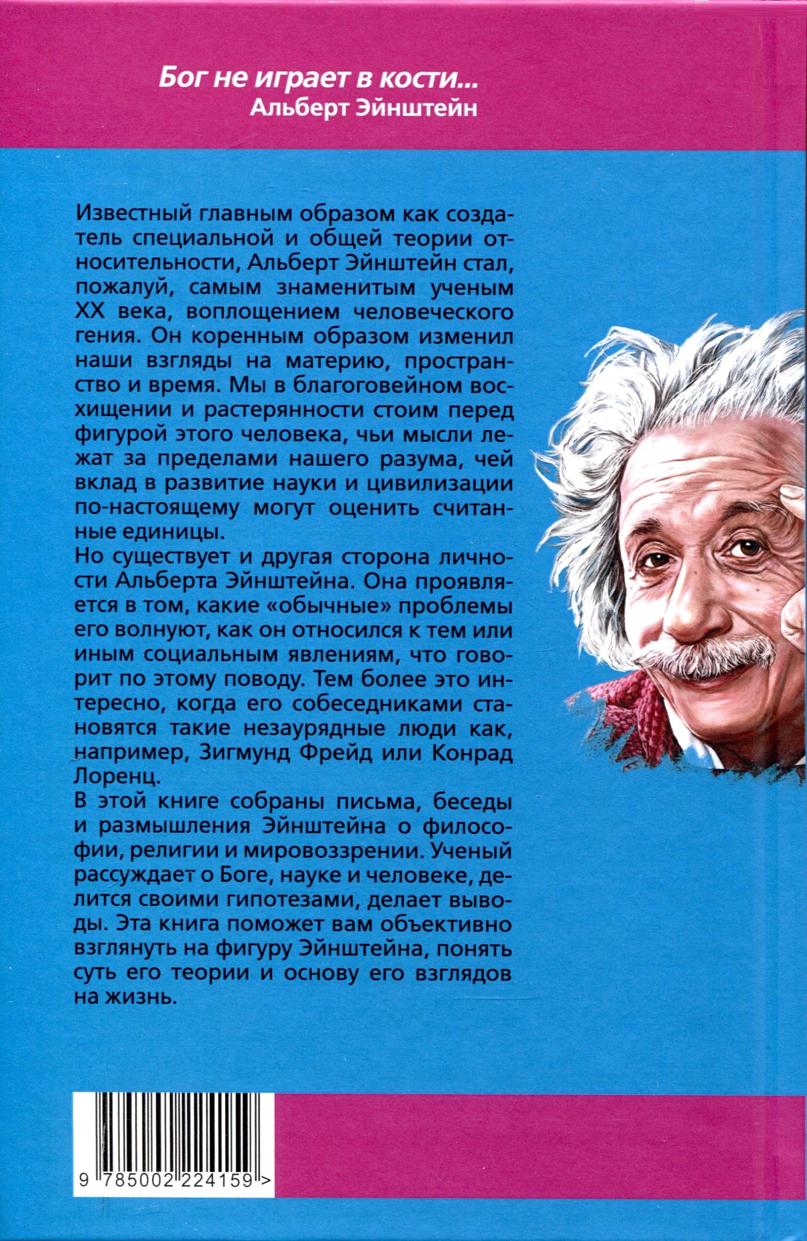 В этой книге собраны письма, беседы и размышления Эйнштейна о философии, религии и мировоззрении. Ученый рассуждает о Боге, науке и человеке, делится своими гипотезами, делает выводы. Эта книга поможет вам объективно взглянуть на фигуру Эйнштейна, понять суть его теории и основу его взглядов на жизнь.