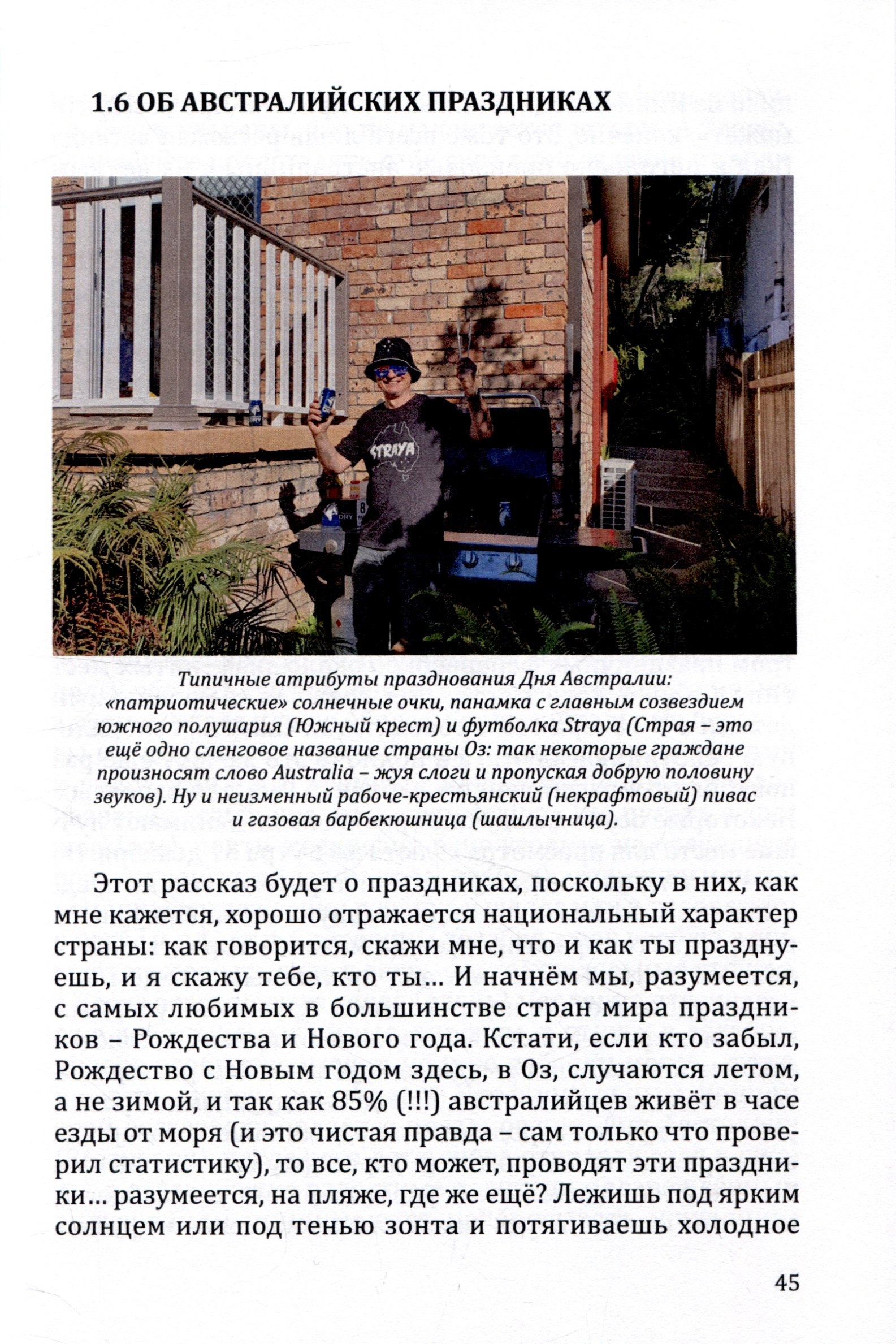 Главы книги – это очерки о быте, увлечениях и проблемах австралийцев. Подчас с юмором, а иногда и с ноткой грусти автор говорит о здравоохранении и образовании, политике и туризме.