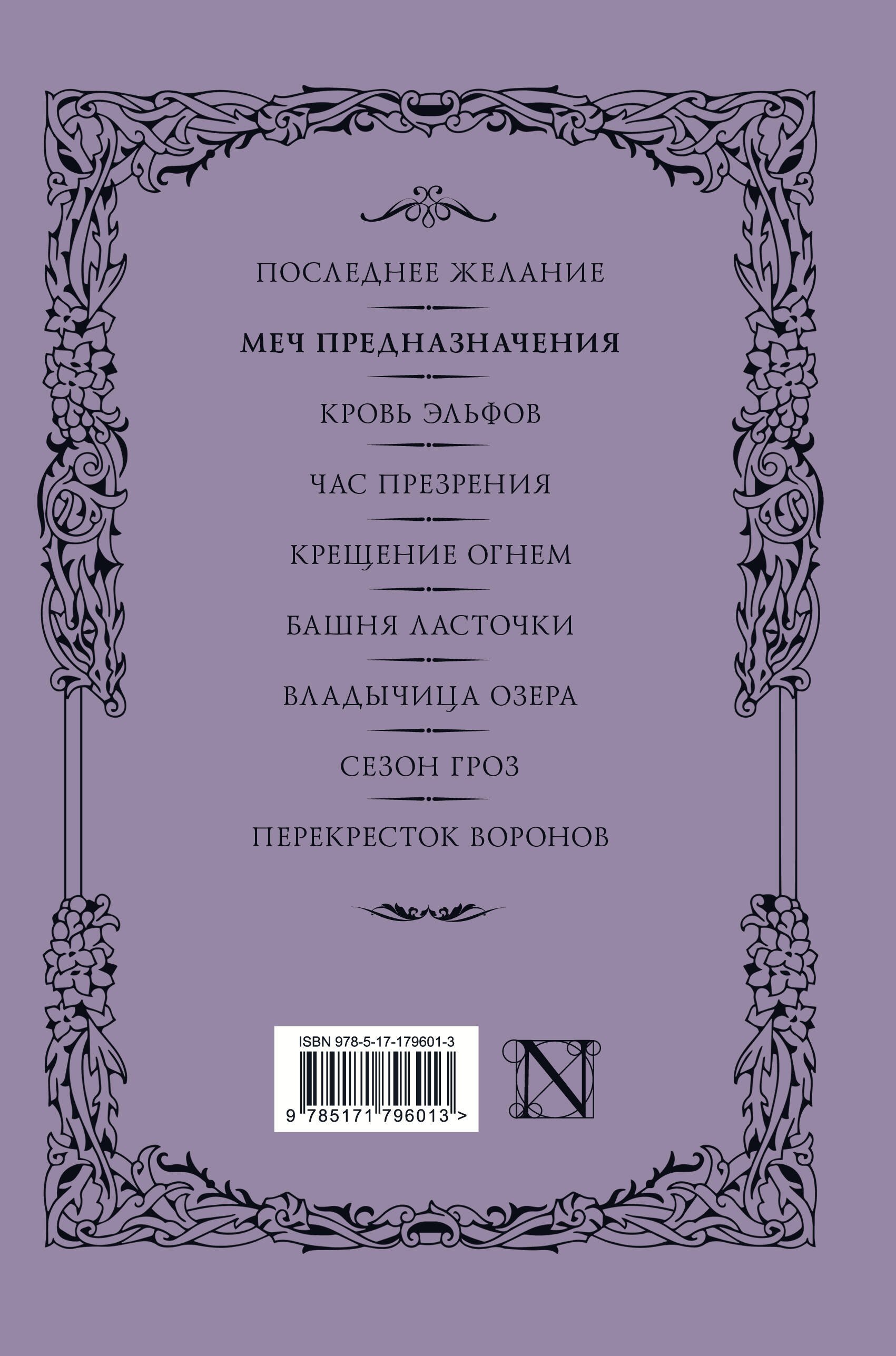Пан Сапковский ненавязчиво связывает обе книги с помощью Геральта в одно целое…в этой книги Геральту предстоит пройти тяготы внутренних размышлений и много понять и осознать…Постепенно мирвозрение Геральта начинает меняться..Книга состоит из небольших рассказов…Некоторые просто потрясающие! А некоторые увлекают на все 100%! В целом впечатление от книги очень положительное! Рекомендую