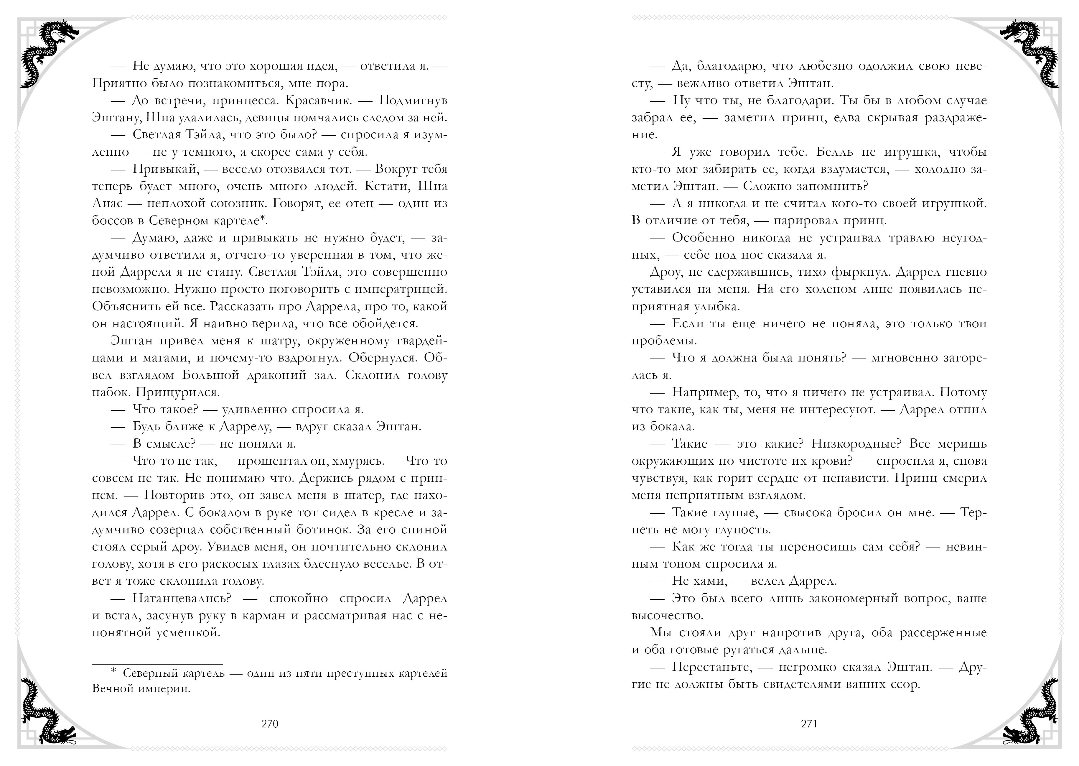 Решила таки оставить отзыв на книгу. Эта книга не попала бы ко мне, если бы подруга не подарила на новый год, читается книга правда легко и это огромный плюс, но как вы знаете всё новое черпает вдохновение из старого, школа, которая очень напоминает нам всем Хогвартс, братья главной героини вообще как будто бы списаны с братьев Уизли. Клише моменты с любовным треугольником и с тем что героиню ненавидят все и вся, прибегая при этом к детским методам травли. Многие выше писали что мир не прописан, но я не могу винить автора за это, ибо это только первая книга, и больше внимания в ней уделяется взаимоотношениям между главными героями. И что примечательно в этой книге хотя бы словарь со сносками есть, где все непонятные слова поясняются(чего к сожалению нет в знаменитых работах Ли Бардуго, там на тебя просто сыпят незнакомыми терминами, а как их понимать это уже как-нибудь сами) И если я не ошибаюсь книга вроде бы с ватпада и есть в таких работах один жирный минус ОПЕЧАТКИ, где-то вроде бы я даже видела не правильное построение предложений, но это всё прослеживается ближе к концу(в флешбеках гг спутаны имена дочери и матери) видимо редакторы расслабились и забили на работу. Но несмотря на всё это, книга мне понравилась и я агрессивно жду вторую часть чтобы получить ответы на свои вопросы