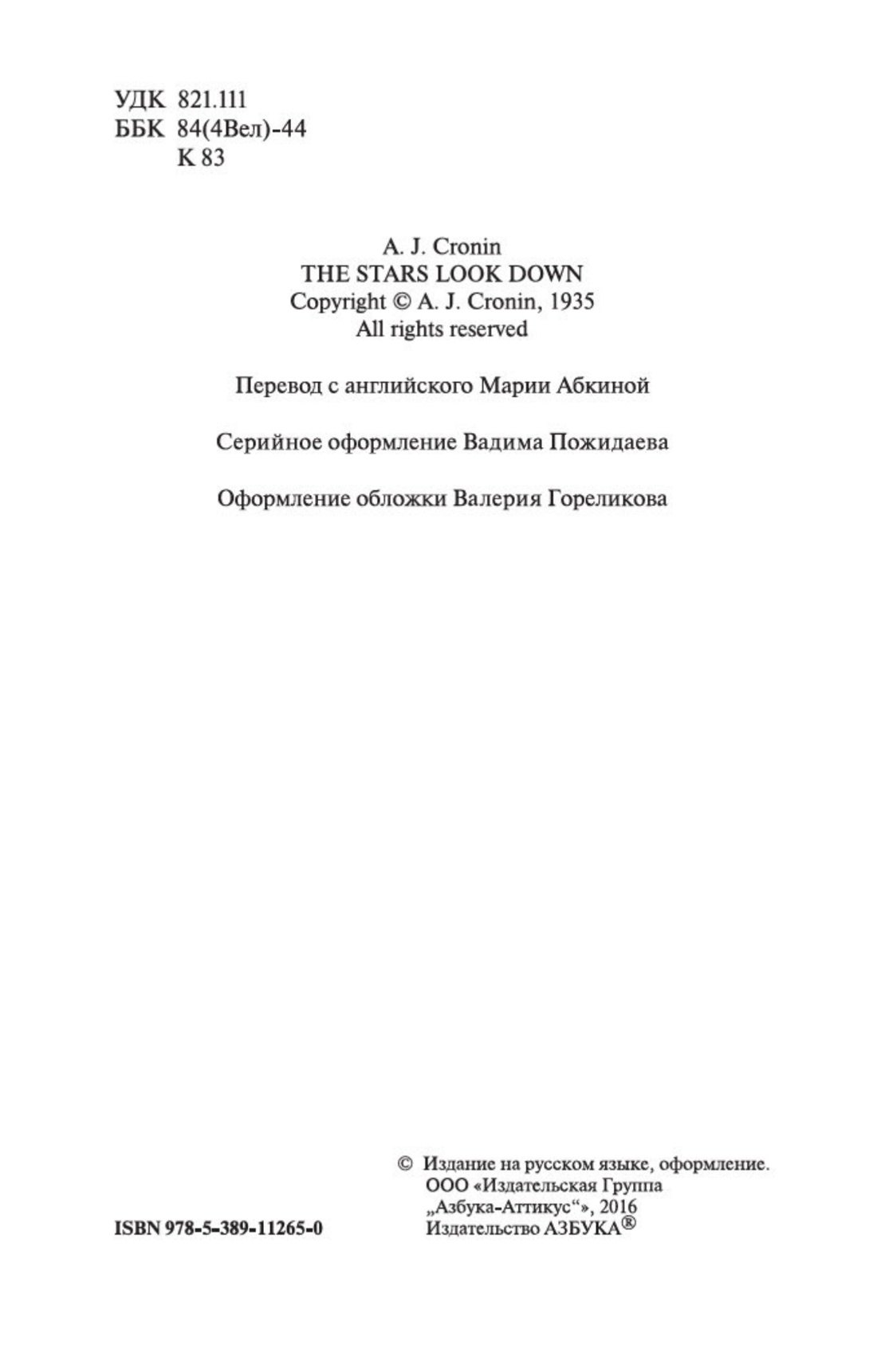 «Звезды смотрят вниз» – это книга о больших социальных проблемах в Англии начала XX века, о тех, кто поддался искушениям, и о тех, кто устоял против них, о тяжелой жизни шахтеров, о борьбе за справедливость, о жадности и жестокости, порождающих смерть и горе. Это роман об истинной любви, о преданности и неверности, о войне, о стремлении следовать собственным идеалам и о лжи ради самовозвышения. Свет и тьма сражаются в каждой строке. А звезды смотрят вниз, где в глубине угольных шахт мерцает истинное Солнце.