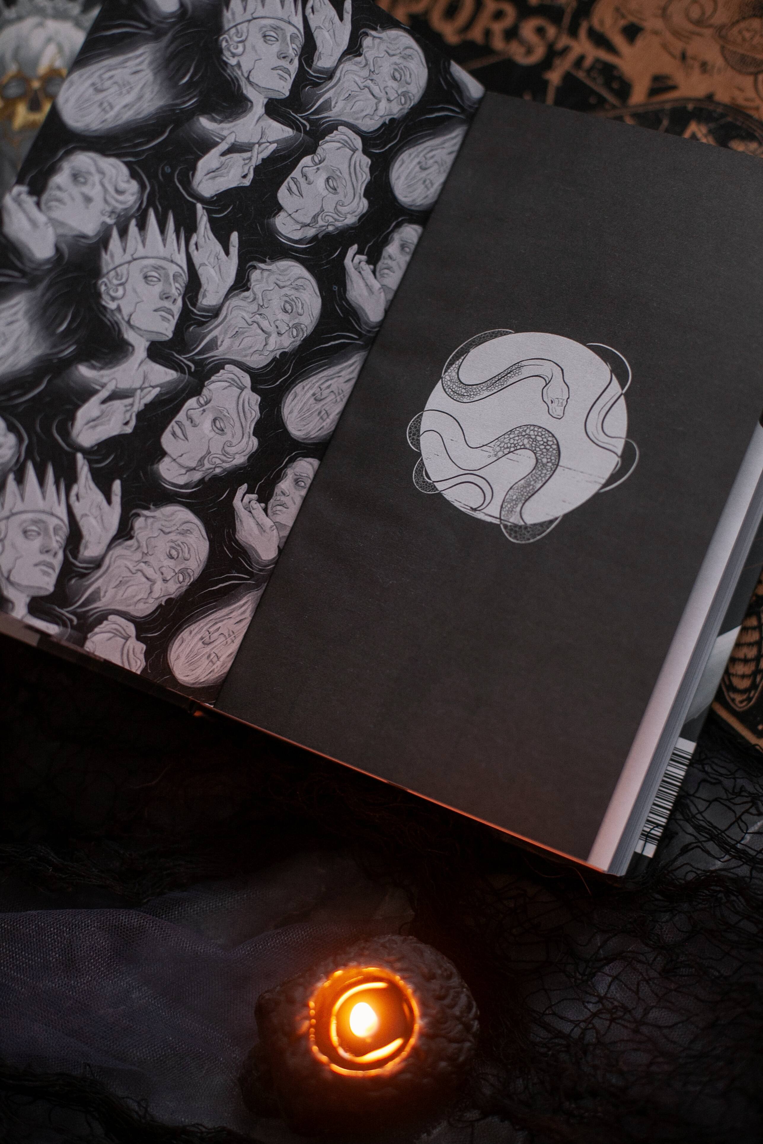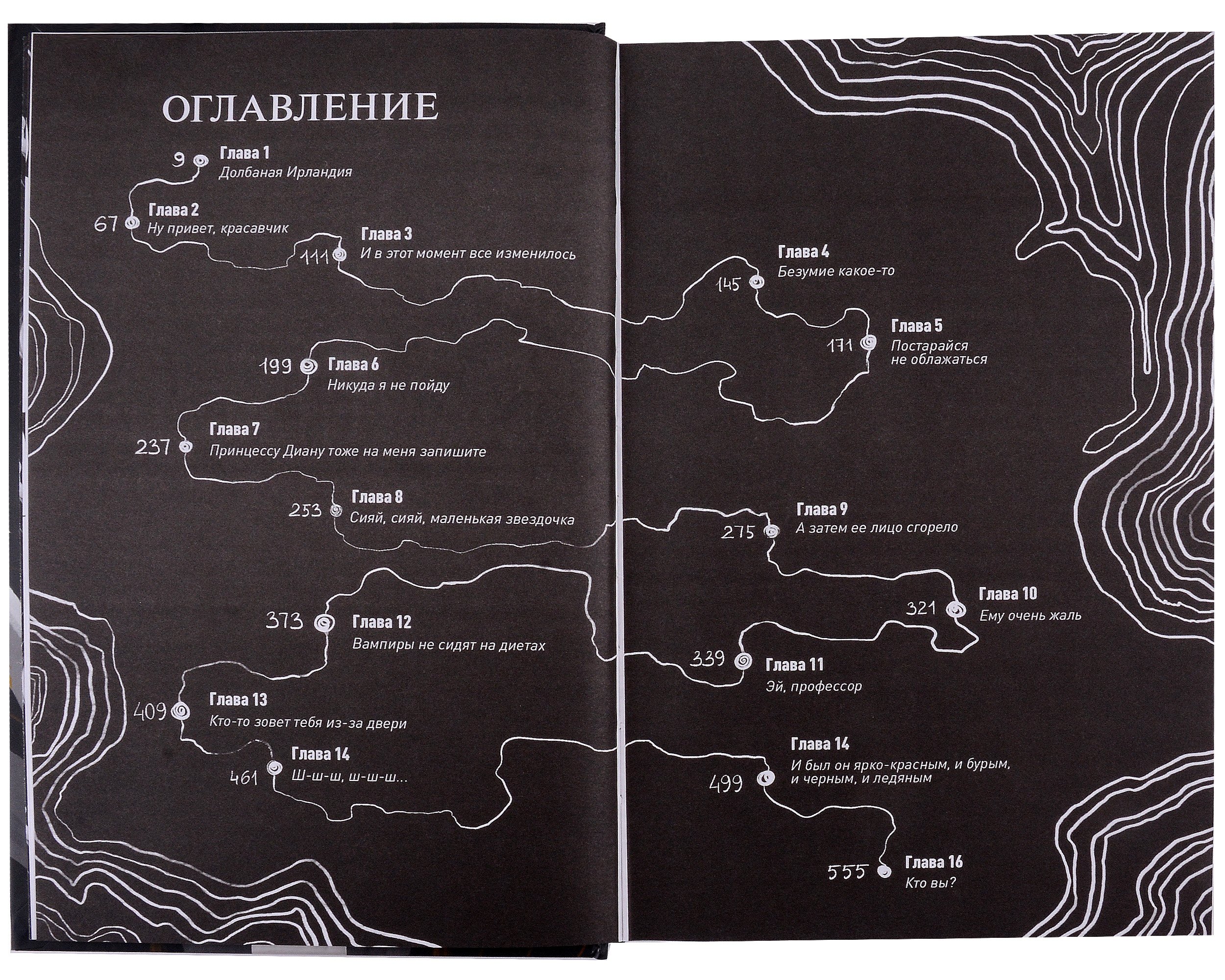Сначала я долго смотрела на оформление. Ну круто же оформленно, даже без иллюстраций: оглавление в виде карты, черные страницы, эти черные капли, обложка с золотом. В живую у нее оказались плотные листы и отличная печать, чернила не смазываются (что вообще радует меня больше всего).