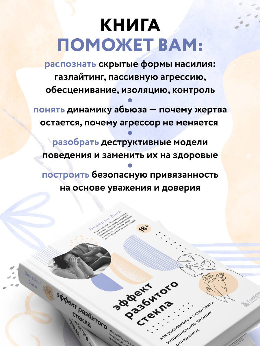 Я уже не раз читала Беверли Энгл, и сейчас я взяла у этого автора новинку «Эффект разбитого стекла». Одна лучше другой! Энгл сняла мне розовые очки и открыла глаза, я поняла, что столкнулась с газлайтингом и пассивной агрессией. Эта книга помогла не только понять, что не так в моих отношениях, но и решить эти проблемы. Рекомендую к прочтению всем людям, кто хочет спасти себя, восстановить свою самооценку и быть счастливым!