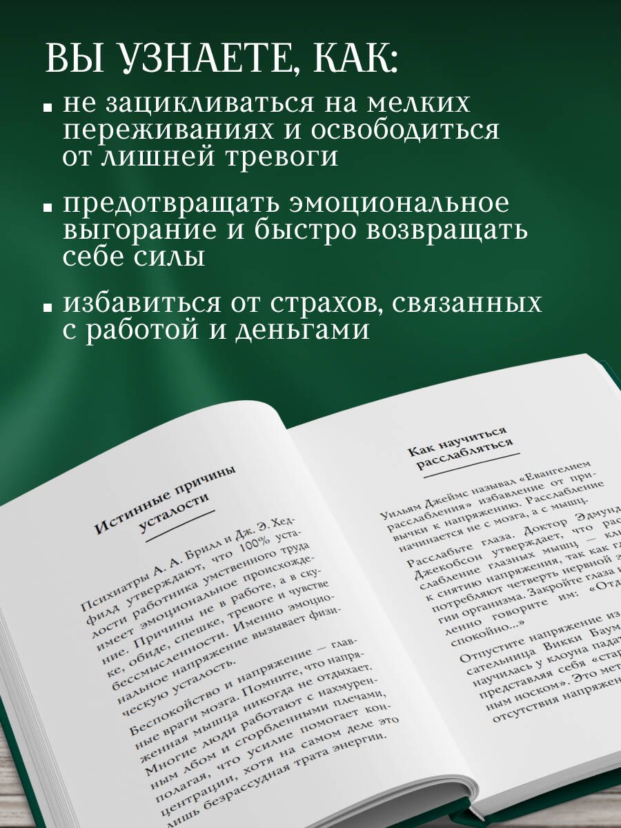 Главное руководство по борьбе с тревогой. Содержит самые простые и при этом самые действенные способы преодолеть страх будущего и обрести уверенность в каждом дне. Помогает справится с навязчивыми мыслями и сохранять ясность ума в любых обстоятельствах. Книгу просто необходимо прочитать всем, кто находится в подвешенном состоянии. Всем, кто меняет работу, кто не уверен в завтрашнем дне, переживает кризис и ищет надежный план выхода из тревожного круга. Проверенное временем пособие для предпринимателей, перфекционистов, молодых родителей, студентов и старшеклассников.