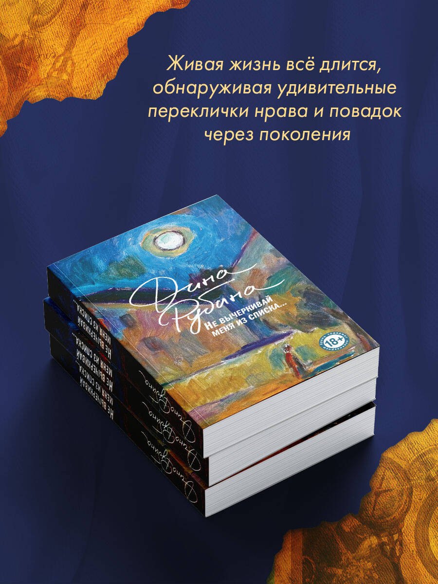 «Не вычеркивай меня из списка…» — сборник семейных историй, в котором собраны уже знакомые произведения, а также новые повести и рассказы. Дина Рубина пишет о родных и близких людях с юмором, самоиронией, оптимизмом, образно и эмоционально. Вспоминает свою многочисленную родню и делится историями о муже Борисе Карафёлове, о сестре Вере, о бабушке Рахили, и даже о любимом питомце Кондрате. Центральное место в книге посвящено родителям — маме и папе Дины Ильиничны.