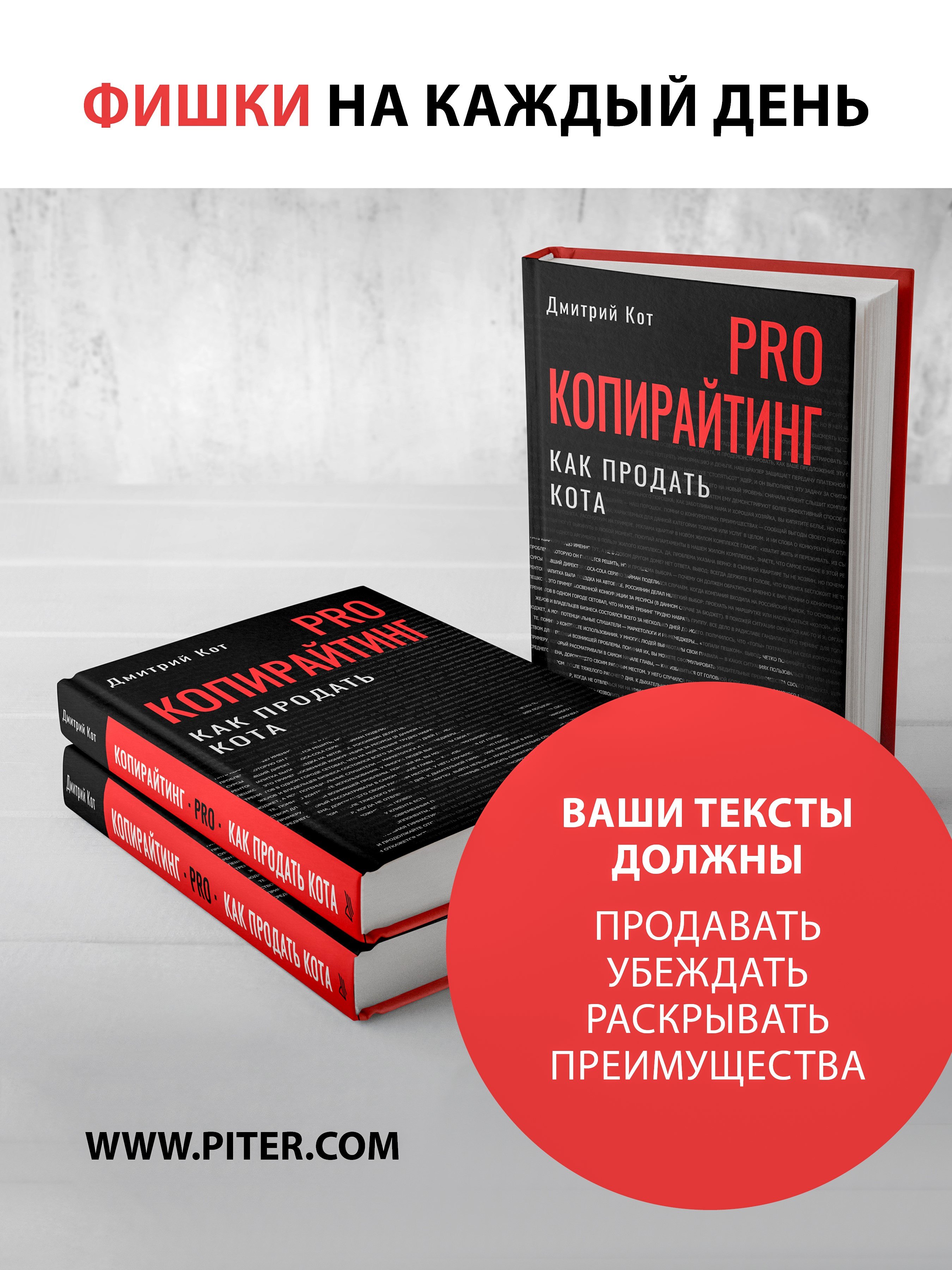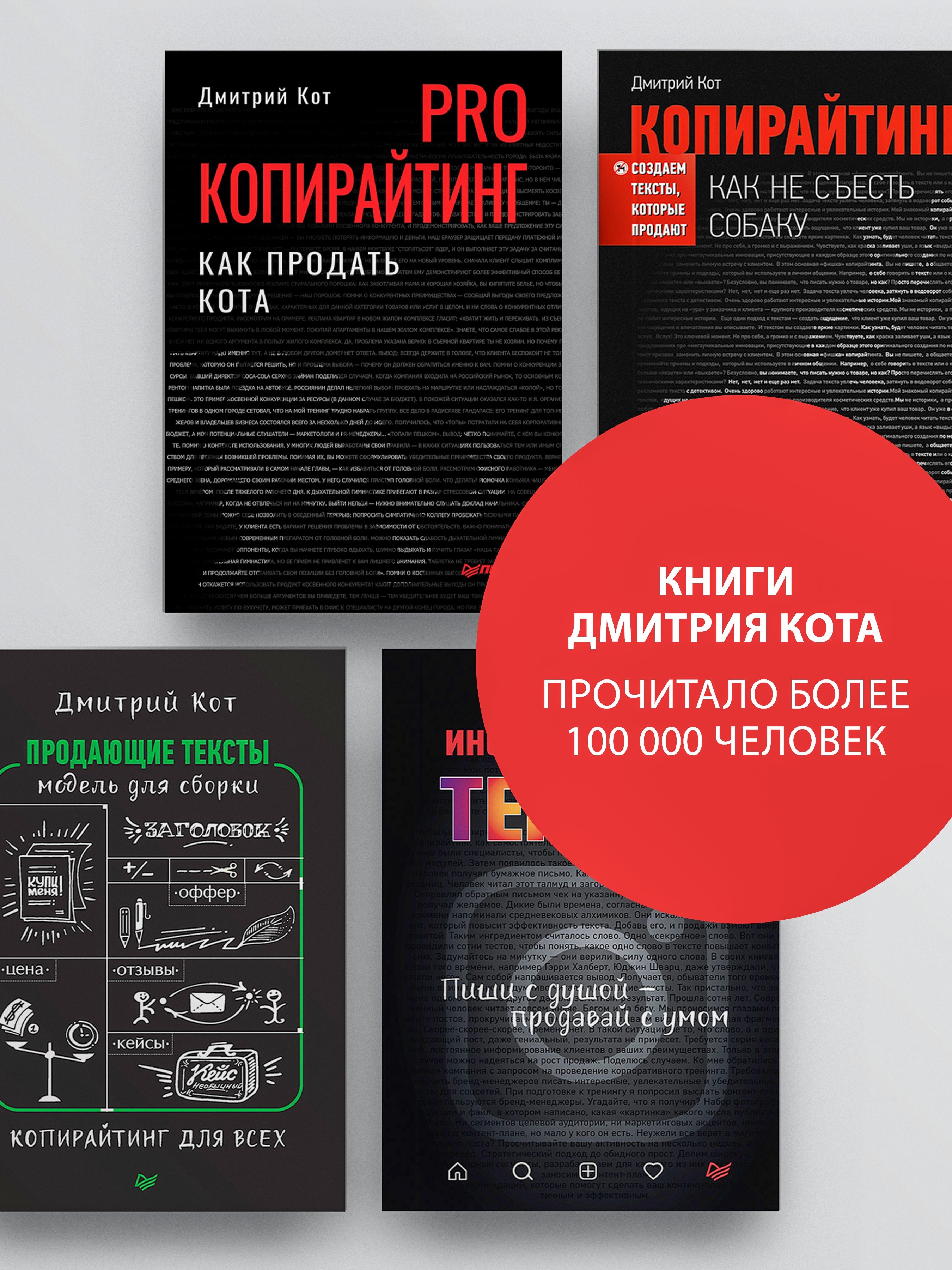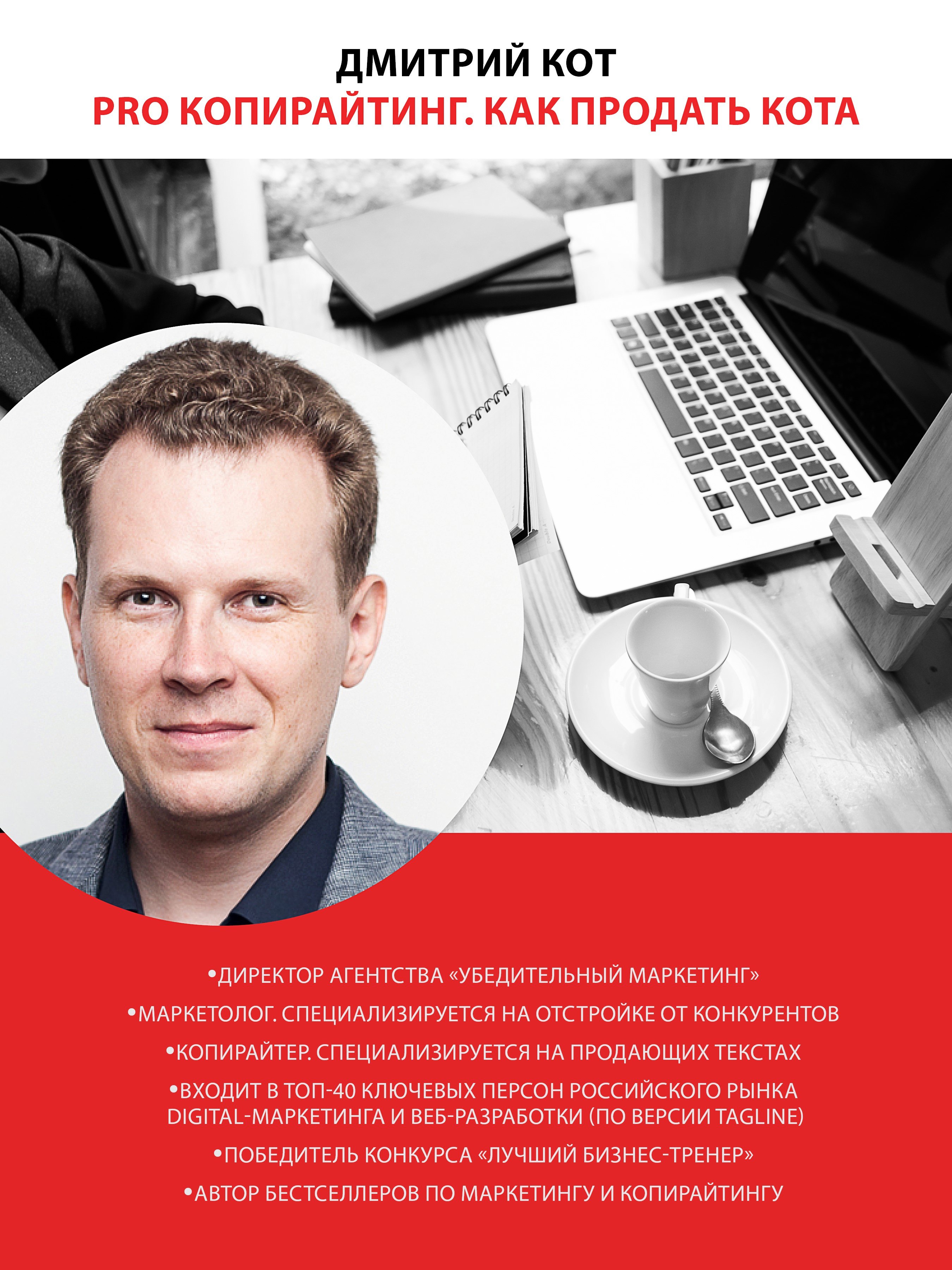 Дмитрий Кот — один из самых известных копирайтеров, бизнес-тренер, директор Агентства продающих текстов, автор бестселлеров «Копирайтинг: как не съесть собаку. Создаем тексты, которые продают», «Продающие тексты: модель для сборки. Копирайтинг для всех» и «Инста-грамотные тексты. Пиши с душой – продавай с умом».