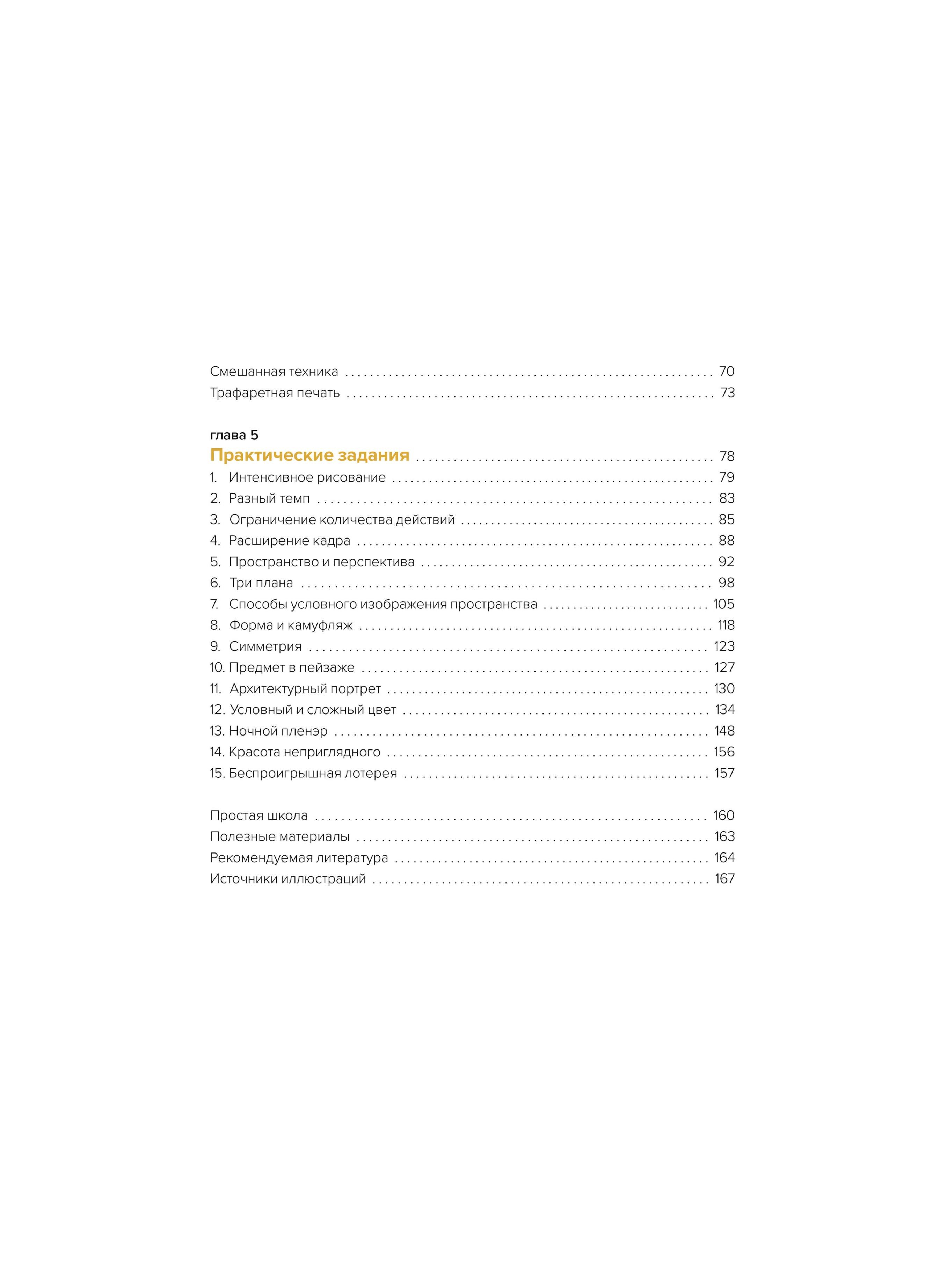 Это сборник рекомендаций и упражнений, которые можно выполнять в любой последовательности, чтобы организовать личную рисовальную практику и сделать ее более структурированной. Автор предлагает задания, которые способствуют развитию наблюдательности, помогают увидеть натуру под неожиданным углом и поставить перед собой новые задачи. Кроме упражнений вы найдете в книге советы по организации рабочего места на пленэре, краткий обзор графических материалов, наблюдения об особенностях пленэрного рисования и другие полезные советы.