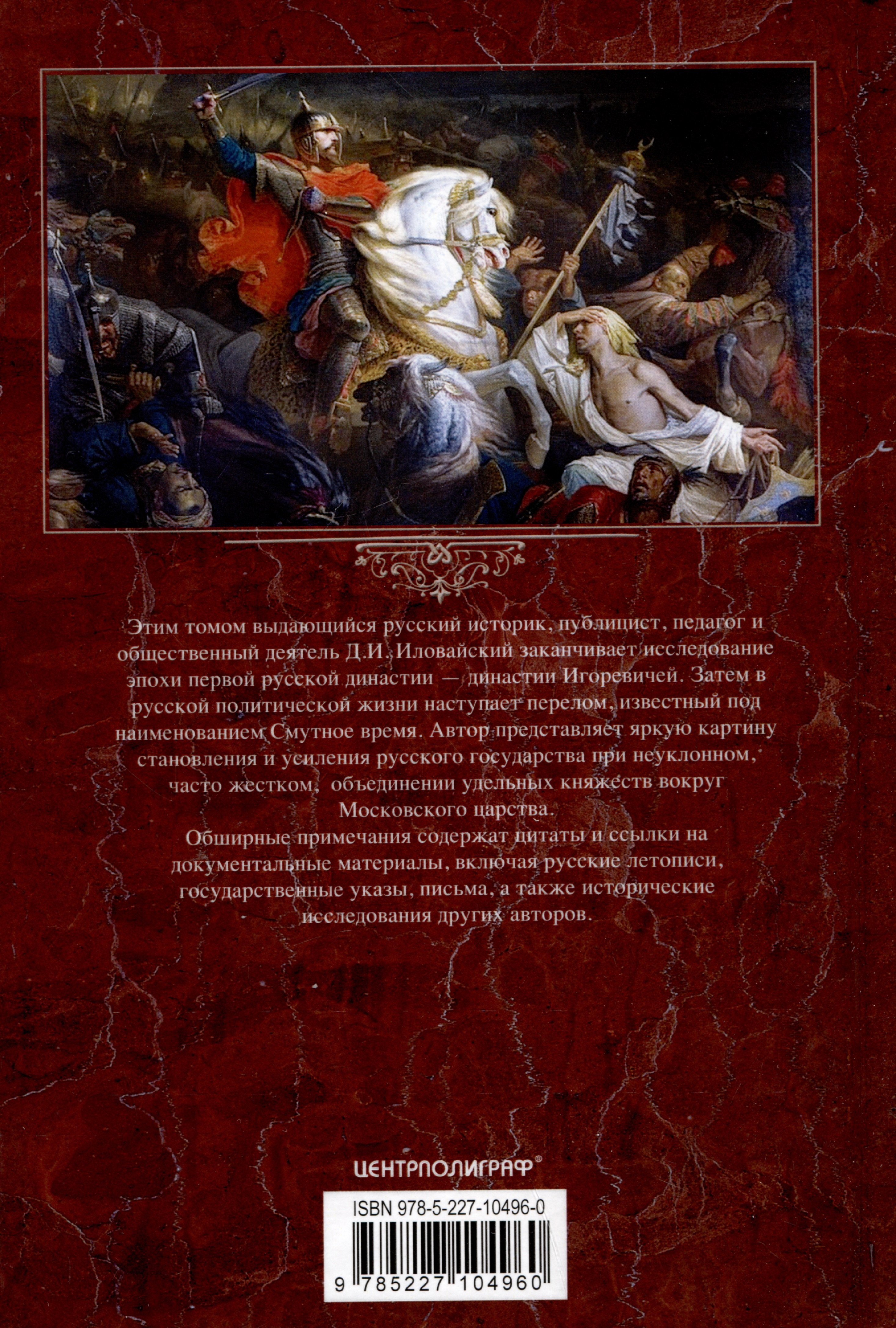 Этим томом выдающийся русский историк, публицист, педагог и общественный деятель Д.И. Иловайский заканчивает исследование эпохи первой русской династии - династии Игоревичей. Затем в русской политической жизни наступает перелом, известный под наименованием Смутного времени. Автор представляет яркую картину становления и усиления русского государства при неуклонном, часто жестком, объединении удельных княжеств вокруг Московского царства.