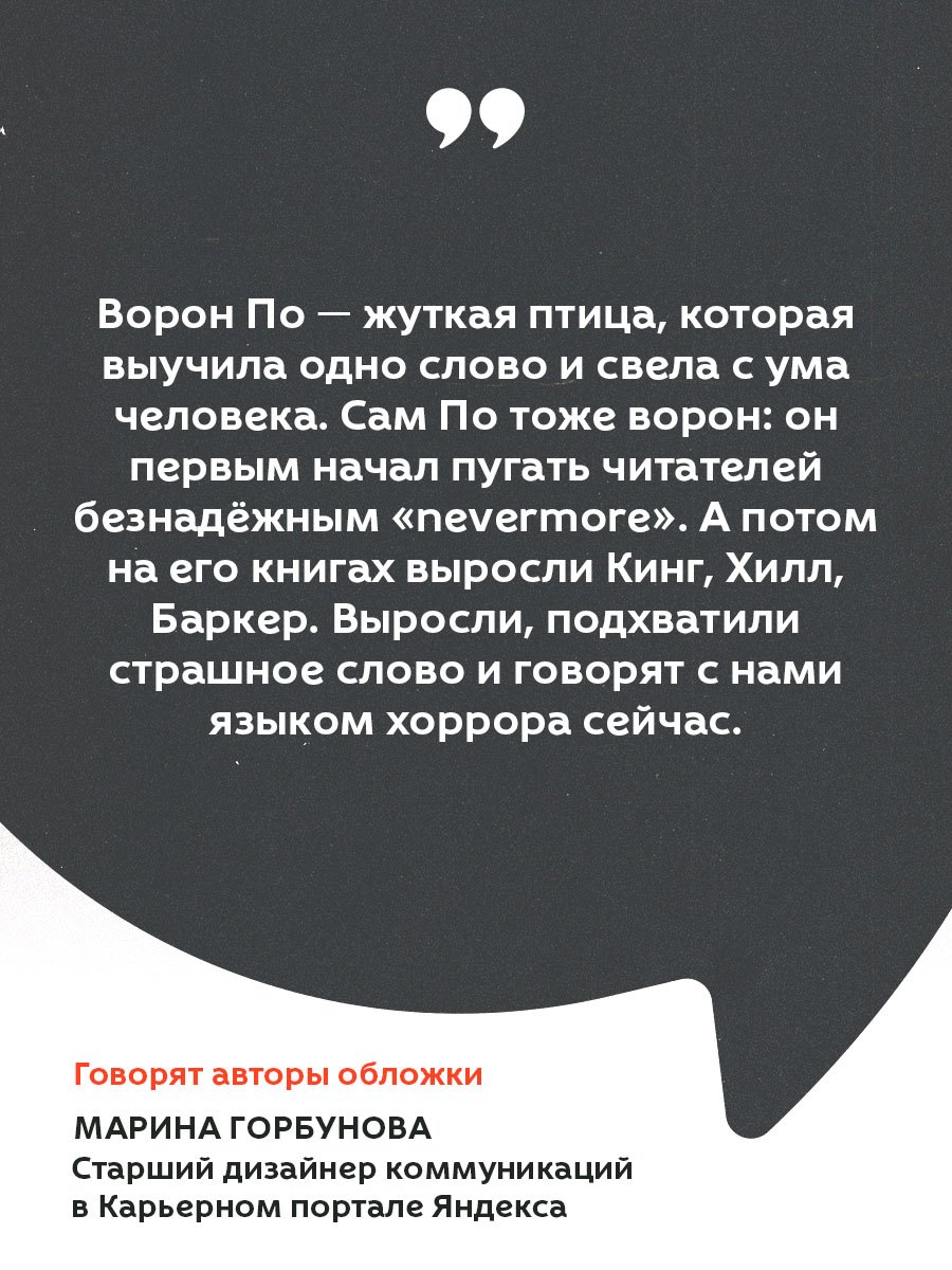 Издание открывает самое известное стихотворение Эдгара По «Ворон», в котором герой переживает мучительную потерю и вечное одиночество, общаясь с загадочной птицей — символом судьбы и неизбежной смерти. В сборник также вошли рассказы «Маска Красной Смерти», «Сердце-обличитель», «Лигейя», «Вильям Вильсон» и другие знаковые произведения автора. Его истории завораживают и заставляют поверить в необъяснимое. Они позволяют читателю составить наиболее полное представление о многогранности таланта писателя — непревзойдённого создателя фантасмагорий, мистических аллюзий и кошмаров.