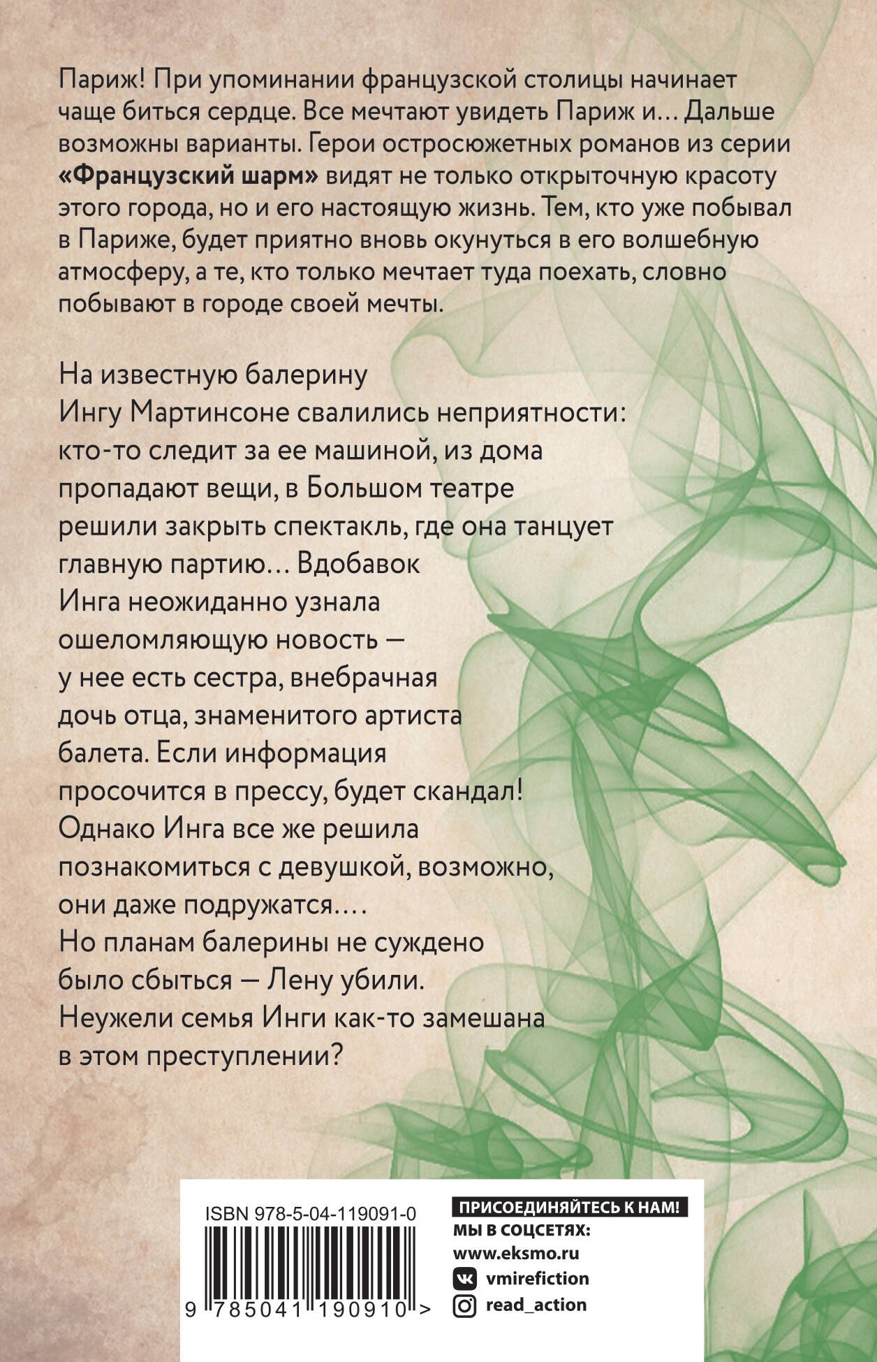 Книга не понравилась. Сюжет слабенький, страсти во многом надуманные. Балетные в большинстве своем люди с канатами вместо нервов. и представлять героиню эдакой нервной и истеричной дамочкой в корне неверно. Ну и полное безобразие с фамилиями главных героев. Если пишите про прибалтов, то хотя бы ознакомьтесь с принципами образования фамилий. В этой книге оба мужчины прибалты носят женский вариант фамилий. Мартинсоне это либо дочь, либо жена, либо сестра мужчины по фамилии Мартисонс. И последнее – нельзя так откровенно использовать чужую жизнь. Хотя бы написала, что все персонажи и события вымышлены, а совпадения с реальными людьми являются случайностью. Моя оценка – кол.
