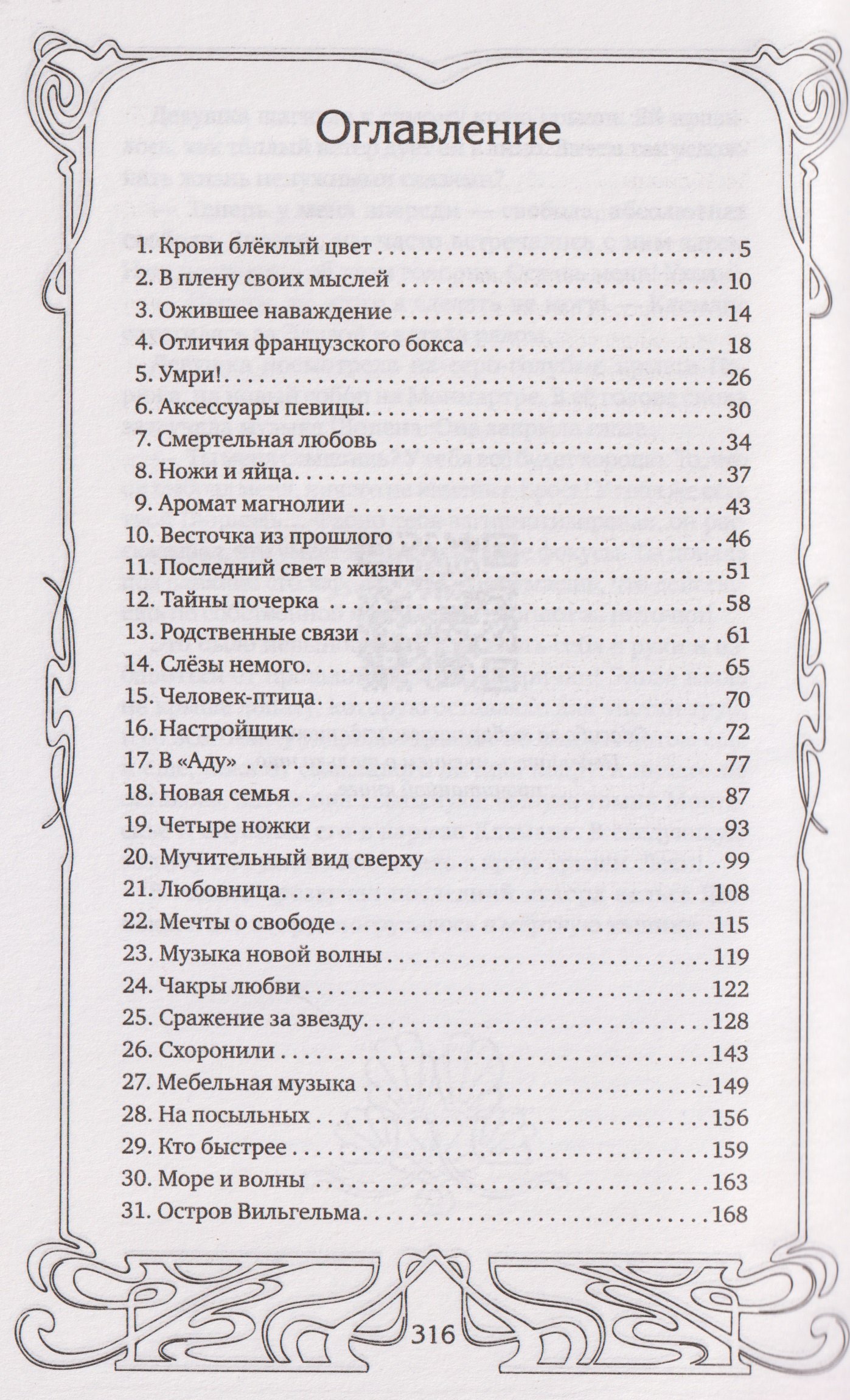 «На улице лил дождь, и сыщик чувствовал себя, как бездомный пёс. В стене дождя он видел то лицо Элизы, то образ Николь с перерезанным горлом, и от этого становилось ещё хуже. Брюки насквозь промокли. Со шляпы капала вода, и он с трудом переставлял ноги по бульвару маршала Фоша».