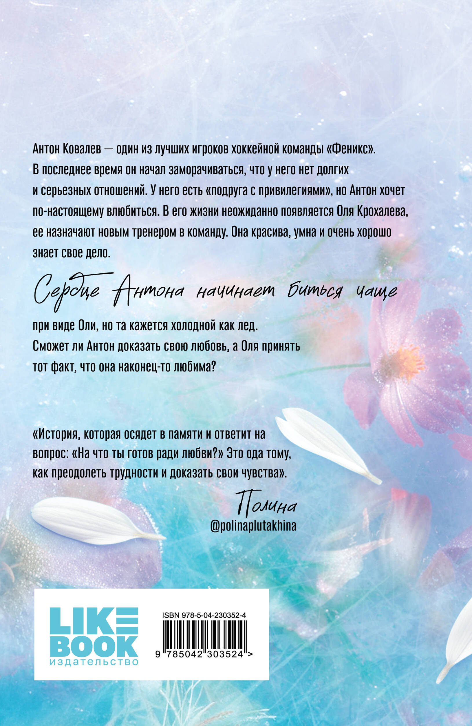 Ух, ну и горячая же книга! Действие романа происходит на льду, но эти страсти способны растопить целые айсберги. Антон никогда не встречал такой, как Оля, поэтому не остановится ни перед чем. Оля, в свою очередь, не привыкла соглашаться на первое же предложение. Их роман по динамике будет почти как полноценный хоккейный матч, где каждая из команд не намерена сдаваться. Прочла с огромным интересом, и, кажется, открыла для себя нового классного сентиментального автора.