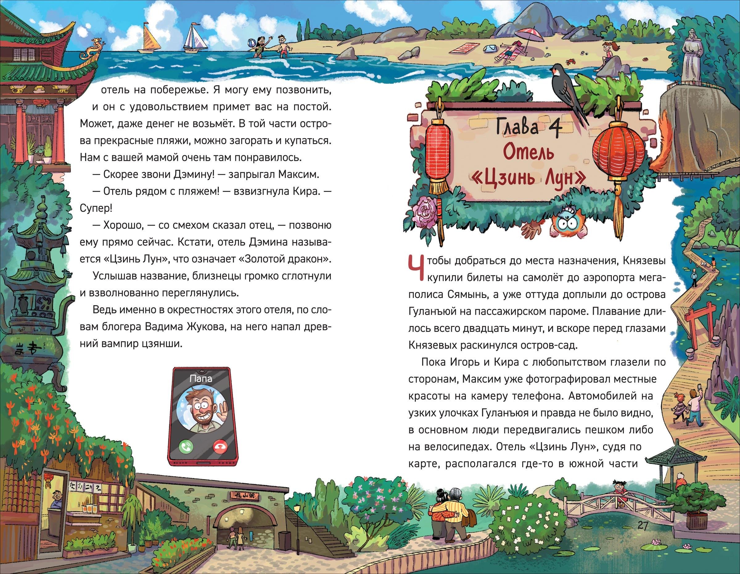 Книга прикольная. Рассказывается про старшего брата и про близнецов которые приехали на остров в китае чтобы посмотреть на новую легенду Цзянши - легенда про мертвых вампиров. Книга прикольная, но если честно на 3 месте из 8 книг как самая неинтересная, ьывали книги и получше если честно. Но я все равно обожаю эту серию книг!