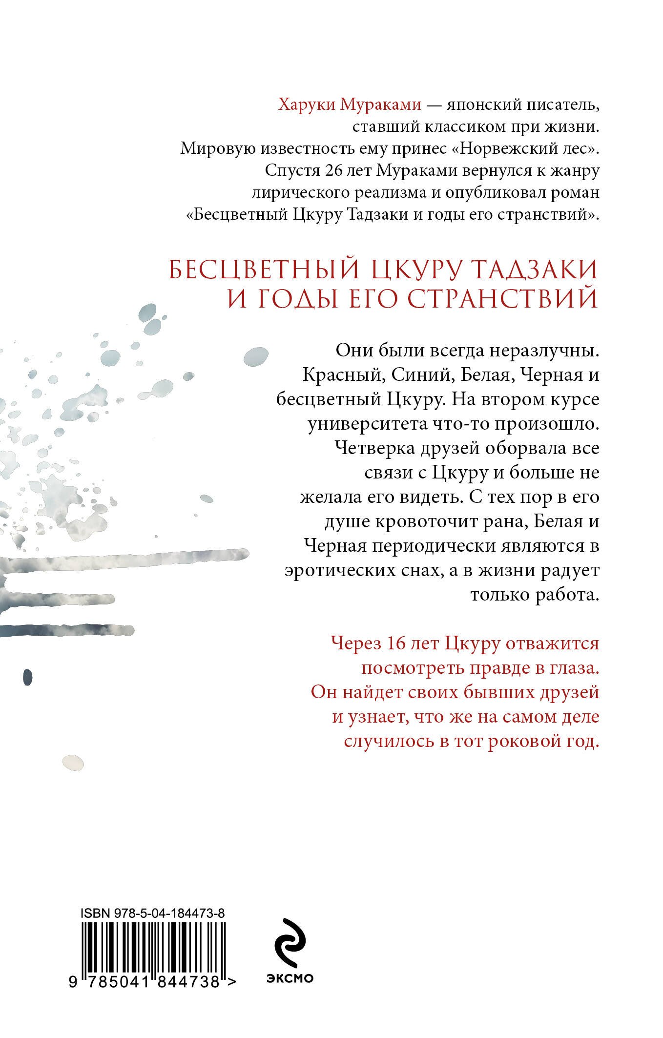 В новом романе невероятный сюжет, переплетение миров, открытие законов вселенной, перерождение героев. К каким последствиям приводят разрушительные эмоции, связанные с предательством? Может ли любовь победить одиночество? Неужели возможно стать другим человеком как снаружи, так и внутри? Могут ли скрытые эмоции оставаться скрытыми? Отпустят ли потрясения прошлого главного героя Цкуру Тадзаки в новое счастливое будущее? Все непросто и очень-очень интересно, как всегда у Харуки Мураками. Погружаешься молниеносно, и не освободиться, пока не дочитаешь до конца!