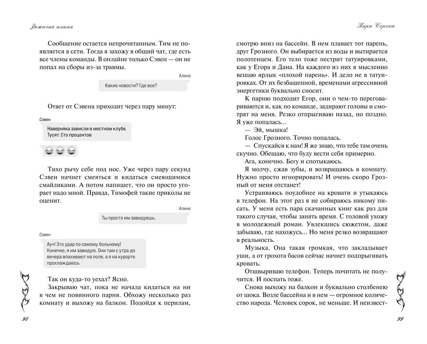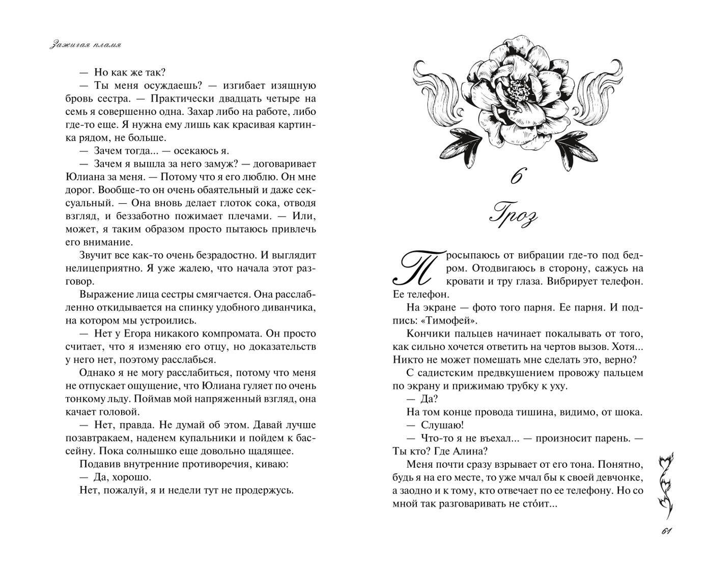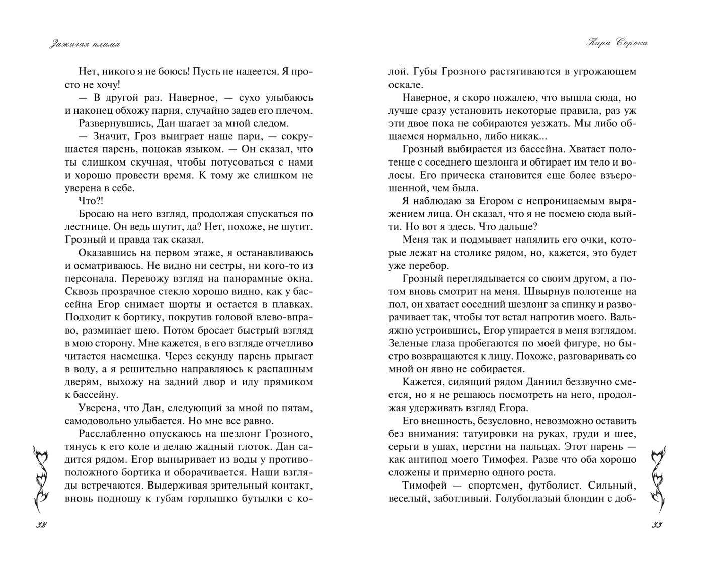 Книга потрясающая, читала взахлеб и до конца она оставляла в напряжении и переживаниях за главных героев. Сюжет показался изначально немного банальным, уже многие авторы романов выпускали что то из разряда "о ненависти до любви", но в "Зажигая пламя" все по другому, переживаешь за героев, до конца не понимаешь как они будут вместе с такими сложными судьбами и характерами. Очень рекомендую!