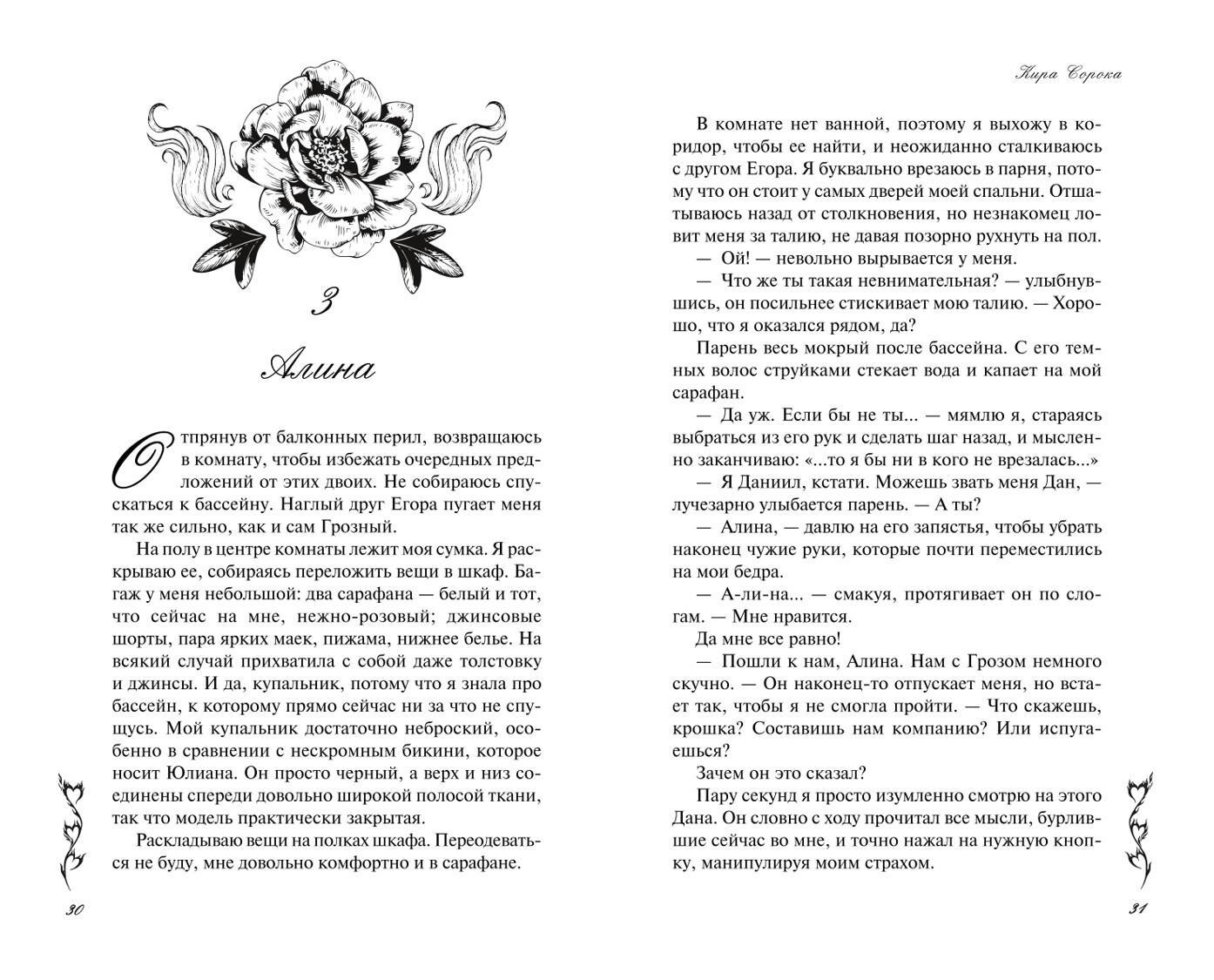 Егор - это настолько РЭД-флаг, что даже я, любительница мудаков, орала благим матом и советовала Алине бежать от него сломя голову. И сейчас я не преувеличиваю. При первой встрече Егор столкнул Алину в бассейн на свадьбе сестры. Ок, он не думал, что она не умеет плавать, он вообще не думал - столкнул, развернулся и ушел. Но, святые ежики, так не делают НОРМАЛЬНЫЕ ЛЮДИ! Через несколько лет, парниша не повзрослел, не изменился. Закатил вечеринку, споил Алену и практически голую сфоткал ее в постели с несколькими парнями. Зачем? Чтобы шантажировать. Но для благого дела, конечно. Алина же виновата, что у него мамаша пропала.
