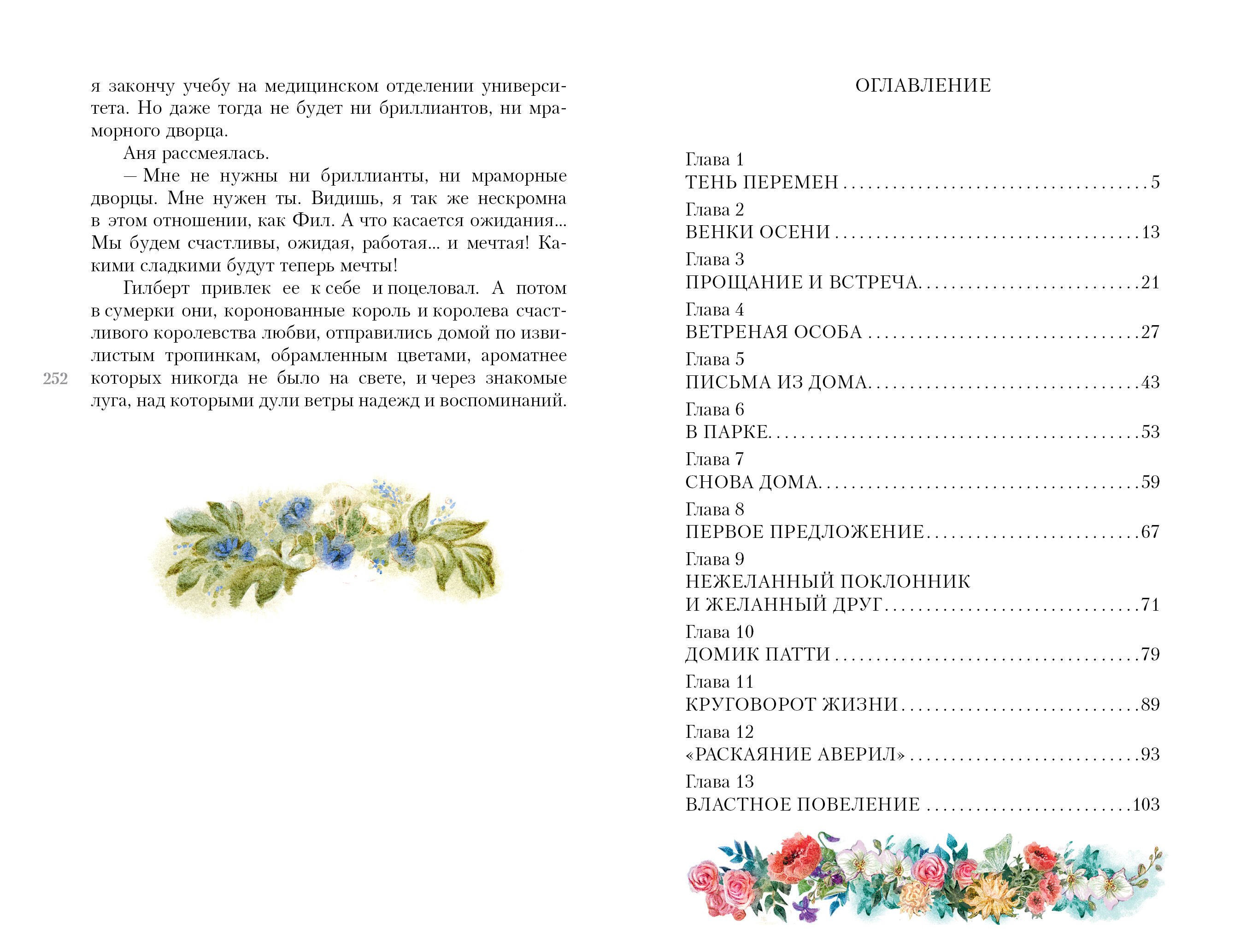 Теперь Аня Ширли уже совсем взрослая девушка, она поступает в университет, и у неё начинается суматошная студенческая жизнь. Вот только с девушкой случаются какие-то непонятные для меня метаморфозы. Я задавалась вопросом, что стало с той милой, доброй, простодушной девчушкой, готовой всем помочь? Чего стоит попытка умертвить кота только за то, что он выбрал её, Аню, своим человеком. Я не кошатница и не зоозащитница, но у меня рука не поднимется причинить вред животинке. Сначала она с живостью обсуждала с подругами совсем не гуманный способ избавиться от кота, а потом, когда попытка не увенчалась успехом, живенько переобулась и полюбила этого кота пылкой любовью. Непонятно мне такое лицемерие. Также при всей своей боговоспитанности Аня частенько проявляет высокомерие, а иногда и язвительность, что совсем не вяжется с прежней Аней из Зелёных Мезонинов. Всё меньше в этой рыжей девчушке добросердечности и теплоты. А ещё мне было непонятно, куда подевалась любовь к учёбе, стремление быть лучшей. Возникало ощущение, что она потеряла ко всему интерес и просто плывёт по течению. Не может Аня и в себе разобраться, что хочет от жизни, с кем готова пройти бок о бок свой земной путь.