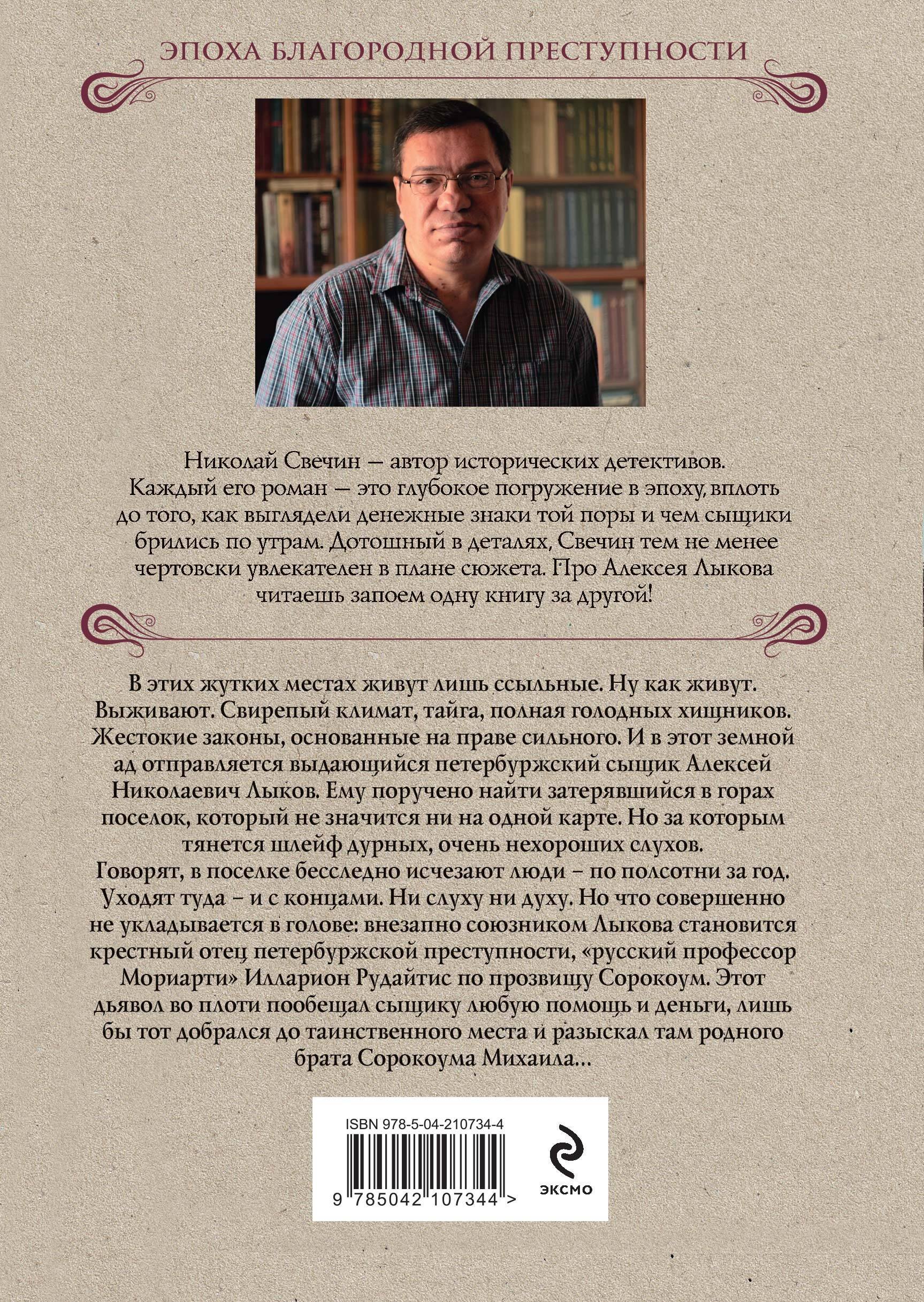 Говорят, в поселке бесследно исчезают люди – по полсотни за год. Уходят туда – и с концами. Ни слуху, ни духу. Но что совершенно не укладывается в голове: внезапно союзником Лыкова становится крёстный отец петербуржской преступности, «русский профессор Мориарти» Илларион Рудайтис по прозвищу Сорокоум. Этот дьявол во плоти пообещал сыщику любую помощь и деньги, лишь бы тот добрался до таинственного места и разыскал там родного брата Сорокоума Михаила…