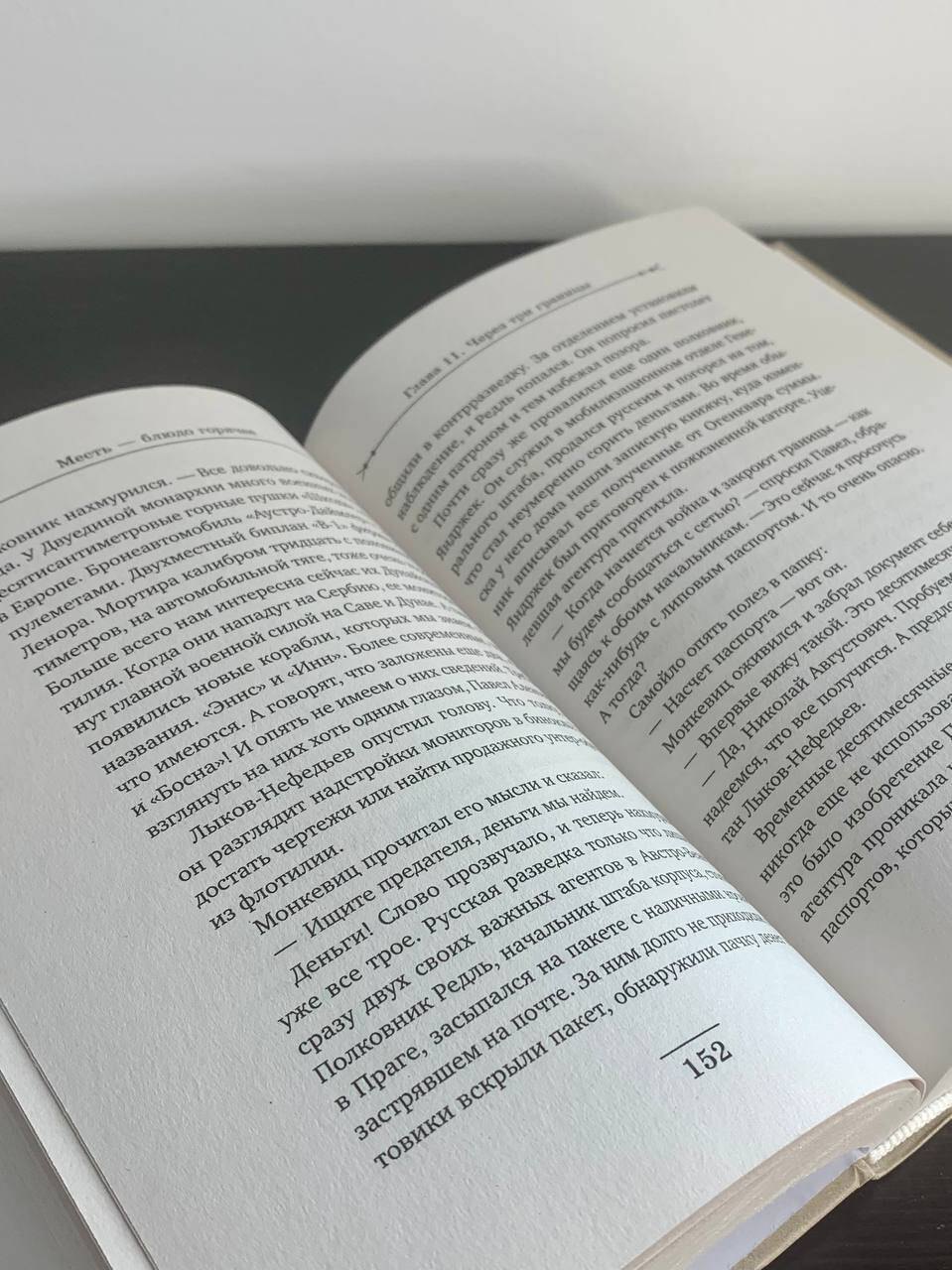 «В новом романе "Месть — блюдо горячее" автор мастерски воссоздаёт атмосферу Российской империи начала XX века, умело сплетая детективную интригу с историческими фактами.