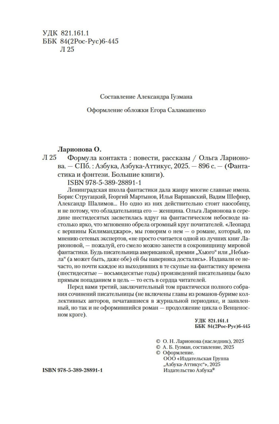 Ольга Ларионова — одно из самых громких имен ленинградской школы фантастики наряду с Борисом Стругацким, Георгием Мартыновым, Ильей Варшавским, Вадимом Шефнером и Александром Шалимовым. С непревзойденным талантом она сочетает в своих произведениях элементы космооперы, высокого фэнтези и социальной научной фантастики с тонким психологизмом, невероятной человечностью, философией и экзистенциализмом, а еще — лиричную прозу, глубину чувств и темы любви и морали. Воображение писательницы переносит читателя в будущее, где человечество осваивает космос, и ставит перед вечными дилеммами. Первый контакт с инопланетными аборигенами, столкновение цивилизаций, новые миры — и посреди всего этого всегда человек с его страстями, желаниями и душевными метаниями, всегда настоящий и пронзительно реальный. Перед вами третий, заключительный том практически полного собрания сочинений писательницы (не включены главы из романов-буриме коллективных авторов, печатавшиеся в журнальной периодике, и заявленный, но так и не оформившийся роман — продолжение цикла о Венценосном крэге). В великолепном издании на белой бумаге, оформленном золотым тиснением, которое станет настоящим подарком для любой коллекции или домашней библиотеки всех ценителей качественной отечественной научной фантастики.