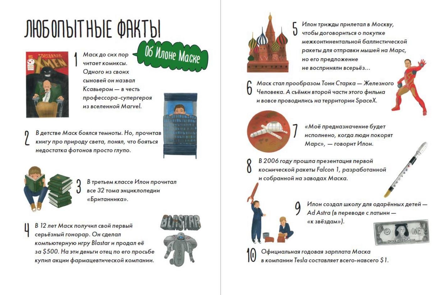 Книга расскажет детям правдивую историю супергероя, которым может стать любой ребенок! Ведь именно Маск стал прообразом Тони Старка — Железного Человека из фильмов Marvel. Нужно только каждый день становиться немного лучше и превращать свои мечты в цели.