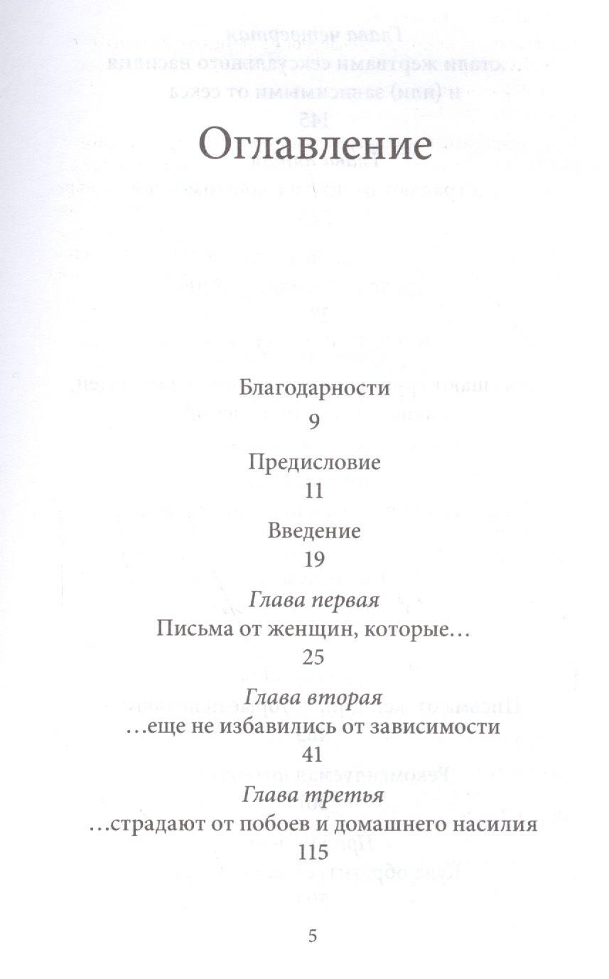 Прекрасная книга , она мне помогла в самый трудный период моей жизни. В своей книге автор публикует письма читателей , и отвечает на каждое письмо. Каждой женщине , переживающей развод с зависимым мужчиной от алкоголя и пр., и сомневающейся в своих поступках рекомендую к прочтению. Пожалуй, лучшая книга , полностью мне раскрывшая что такое созависимость в отношениях , и как " с ней " дальше жить. Наконец то я нашла ответы на все свои вопросы, так долго мучавшие меня, книга как вместо тысячи психологов.