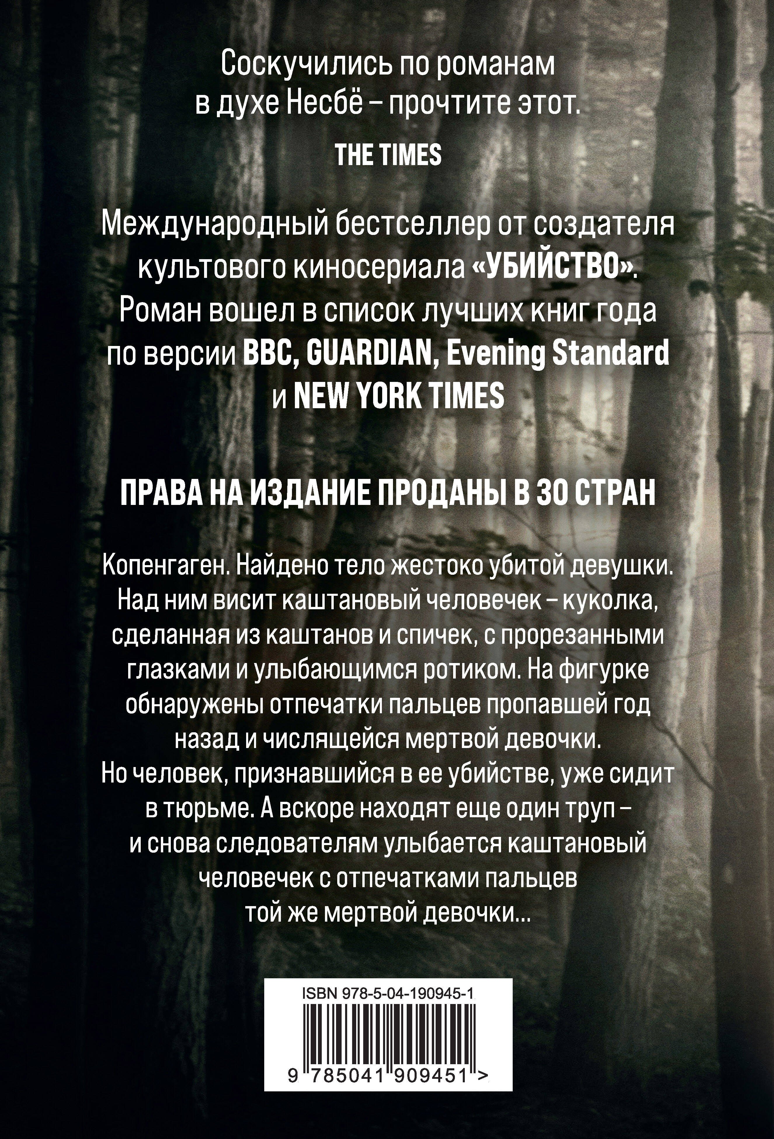 Копенгаген. Найдено тело жестоко убитой девушки. Над ним висит каштановый человечек – куколка, сделанная из каштанов и спичек, с прорезанными глазками и улыбающимся ротиком. На фигурке обнаружены отпечатки пальцев пропавшей год назад и числящейся мертвой девочки. Но человек, признавшийся в ее убийстве, уже сидит в тюрьме. А вскоре находят еще один труп – и снова следователям улыбается каштановый человечек с отпечатками пальцев той же мертвой девочки…