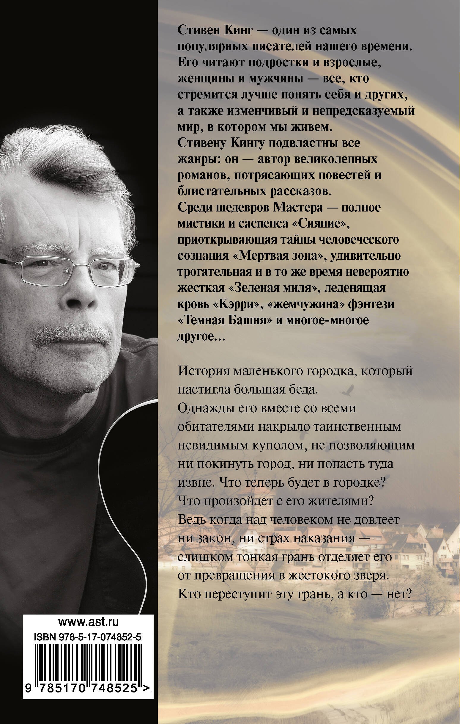 Являюсь большой поклонницей книг С.Кинга, при этом в равной мере люблю и стиль его произведений, и сюжеты. Роман «Под куполом» оправдал ожидания на 85% примерно. Не больше и не меньше. Поясню подробнее. Во-первых, реклама: может, конечно, у меня настройки инета такие, но буквально на каждом сайте (крайне редко связанном с литературой в принципе) почти не отключаемые баннеры, где помимо обложки, названия и т.п. в высшей степени восторженные отзывы. Как всегда, когда слишком много ожидаешь, больше разочарования. Словом, лучшим произведением Кинга я бы эту книгу не назвала. «Купилась» на сюжет и количество страниц (чем больше – тем лучше, это вам любой книголюб сажет). Во-вторых, особенности перевода: так себе, честно говоря, перевод. Весьма неожиданный удар со стороны В.Вебера, давно и плотно занимающегося в этой сфере. Дабы не портить ожиданий другим, конкретные примеры приводить не буду. В-третьих (в-положительных), Кинг есть Кинг, роман захватывает, оторваться практически невозможно, осилила за 2,5 ночи+пол-дня на работе ;)). Смазанный, плоский и неинтересный финал – это в-четвертых. Имеется в виду разгадка и способ устранения купола