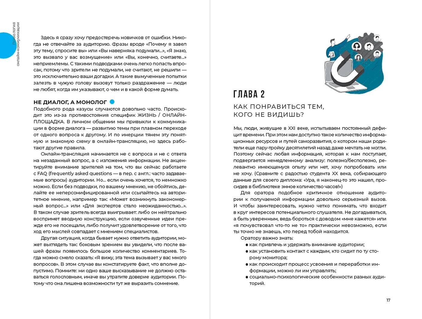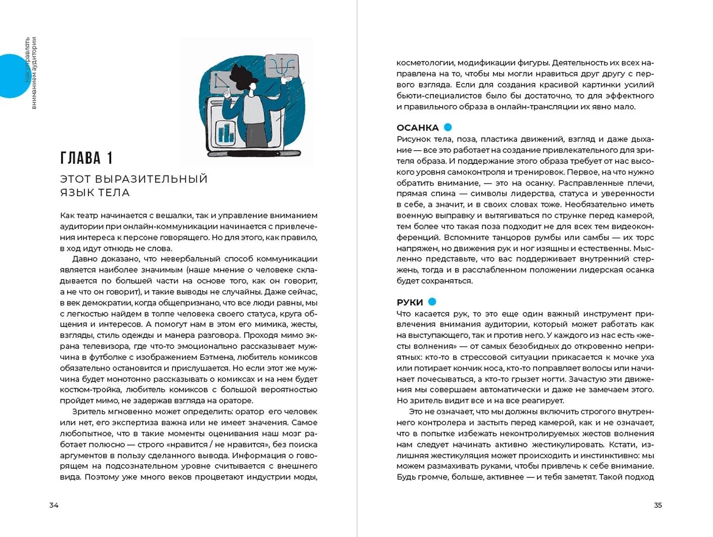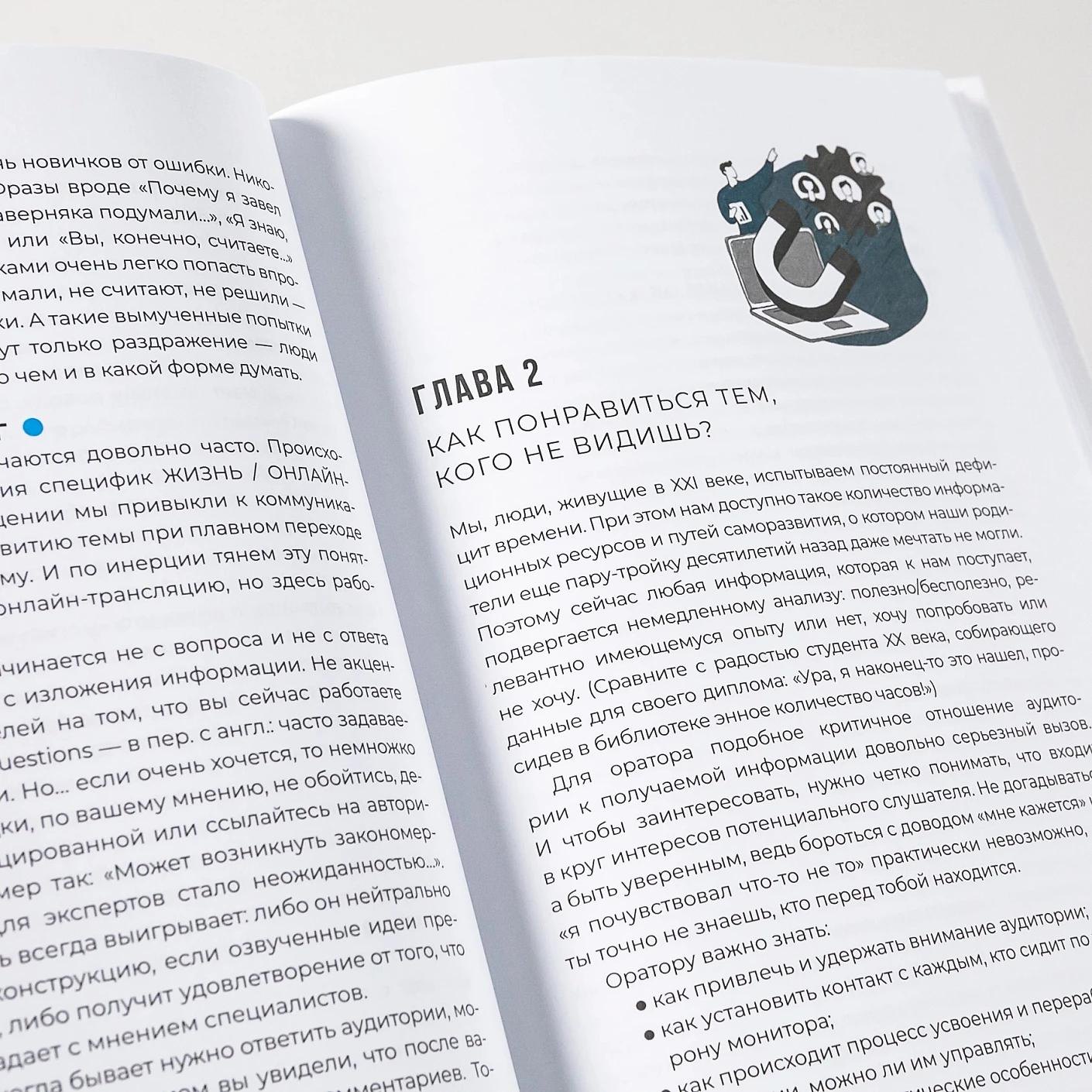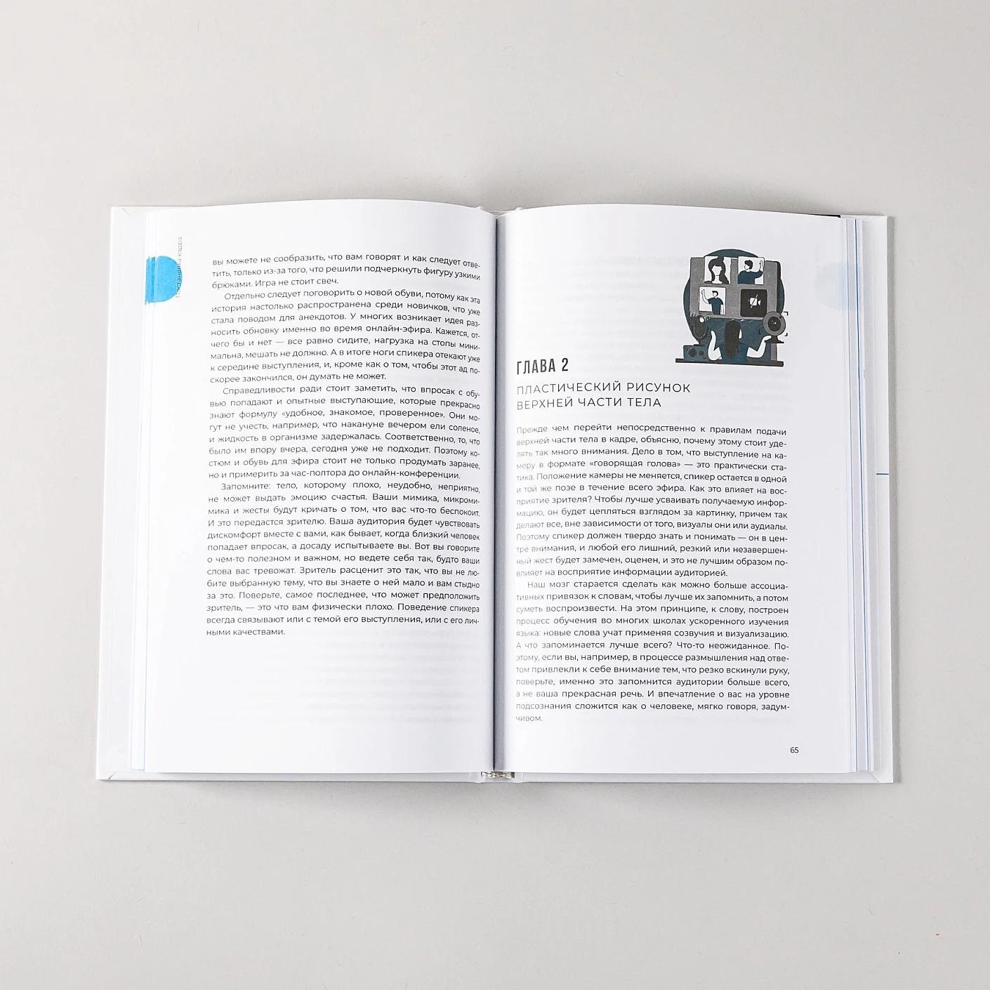 Всему этому учит книга Светланы Колосовой, кандидата психологических наук и автора многочисленных статей на тему онлайн-коммуникаций, эмоционального интеллекта, лидерства и стрессоустойчивости. Объясняя психологические Особенности: дистанционных выступлений, она подсказывает, что и как нужно говорить в эфире, почему стоит максимально упрощать свою речь и какие приемы помогут вовлечь аудиторию в разговор. Целый раздел в книге посвящен постановке кадра: вы узнаете, как подобрать оптимальный фон и каких предметов в объективе лучше избегать (спойлер: в первую очередь зеркал), какие жесты органично смотрятся в кадре и почему отсутствие штанов все-таки плохо влияет на качество выступления.