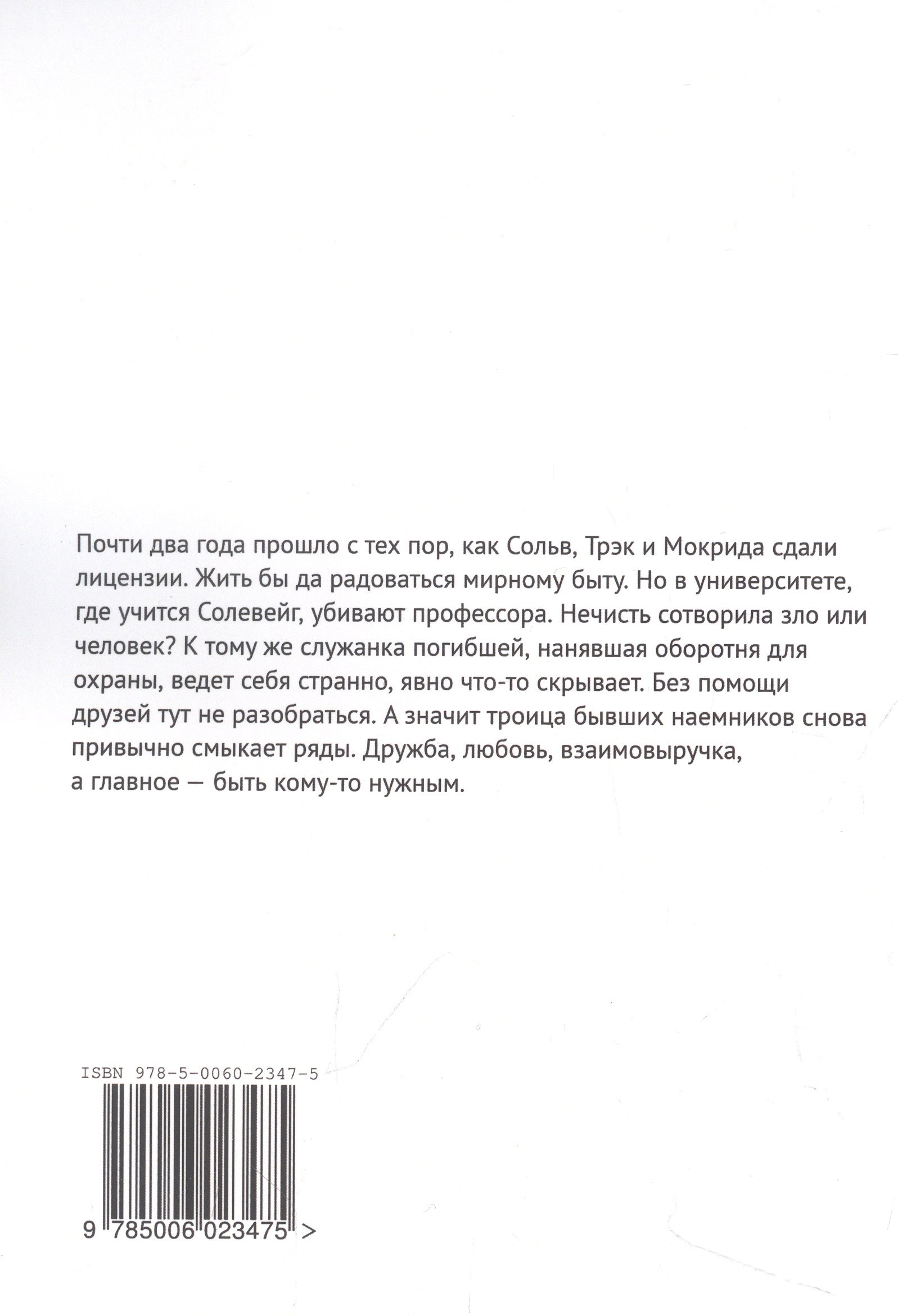 Вторая книга подарила мне несколько иные ощущения от прочтения. Да, персонажи по-прежнему для меня яркие и настоящие, а вот сама история стала уже более приключенческой и захватывающей во многом благодаря сюжету. В начале книги мы видим, что жизнь наших любимых персонажей идет достаточно размеренно и непринужденно, но тут вдруг происходит трагедия – убивают профессора университета, в котором учится один из главных героев и подозрение падает на нечисть. Без опыта и знаний Сольва, Трэка и Мокриды не обойтись, чтобы узнать, что произошло на самом деле, а значит придется ненадолго отодвинуть мирный быт и вспомнить былые навыки...