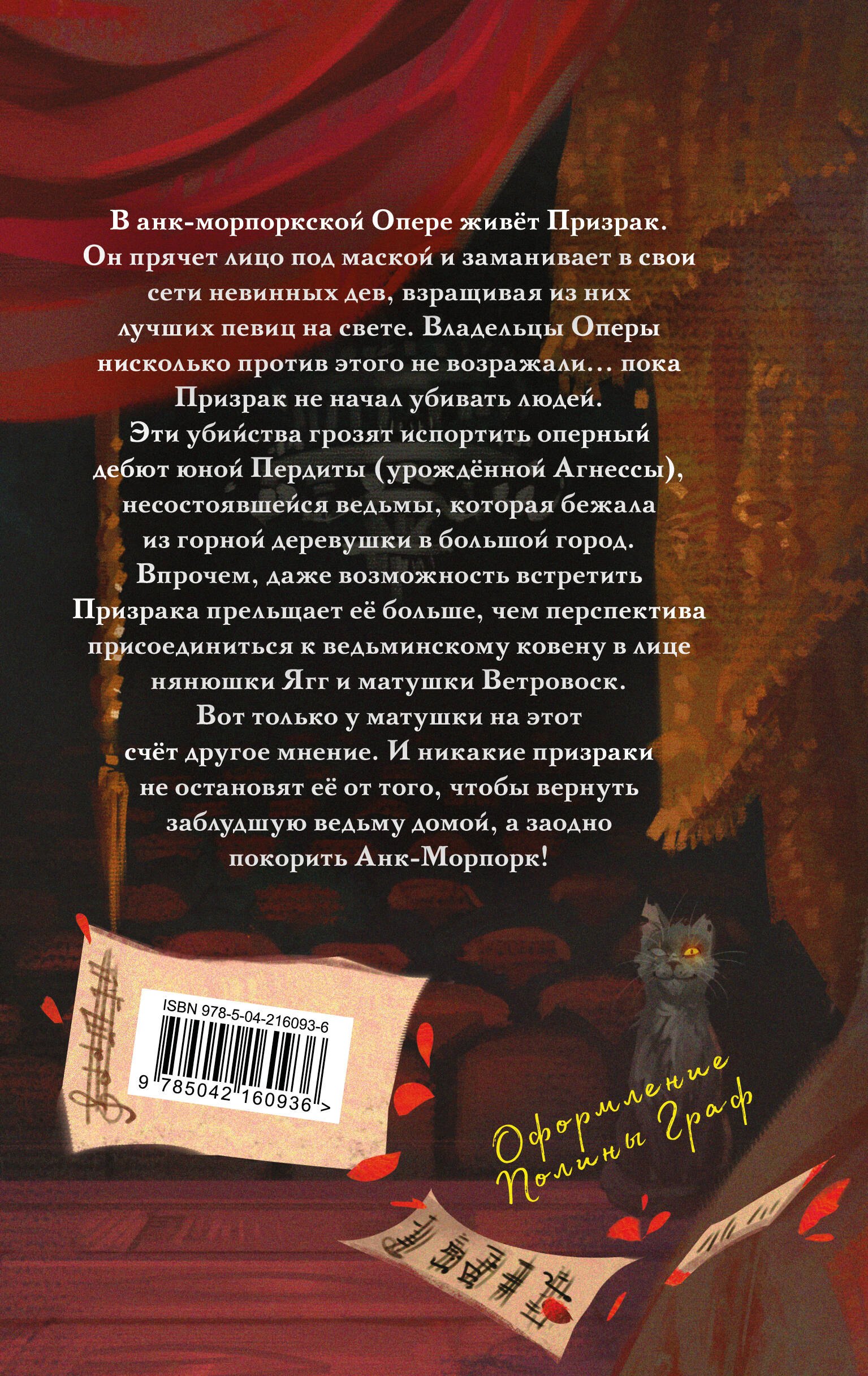 О да, это очередная ода Терри Пратчетту. Отличная книга построенная на основе другой книги о Призраке Оперы. Мало того, что любимые персонажи опять находят приключения там, где казалось бы их нет, так добавляются ещё новые персонажи и загадки. Все это приправлено прекрасным юмором автора, абсурдными ситуациями и моралью от Ведьм. Советую к прочтению