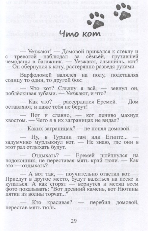 Натерпелся домовой-Еремей... спасибо коту Варфаламею, помог сделать важнейший шаг к принятию жизни домового - почувствовать, что его труд нужен. Яркий главный герой — кот, который становится проводником в мир фантазий и учит смелости и дружбе. Лёгкий и увлекательный сюжет. Поучительные моменты — через забавные ситуации книга помогает осознать важность взаимопомощи и преодоления страхов. История с юмором и прочитана хорошо.