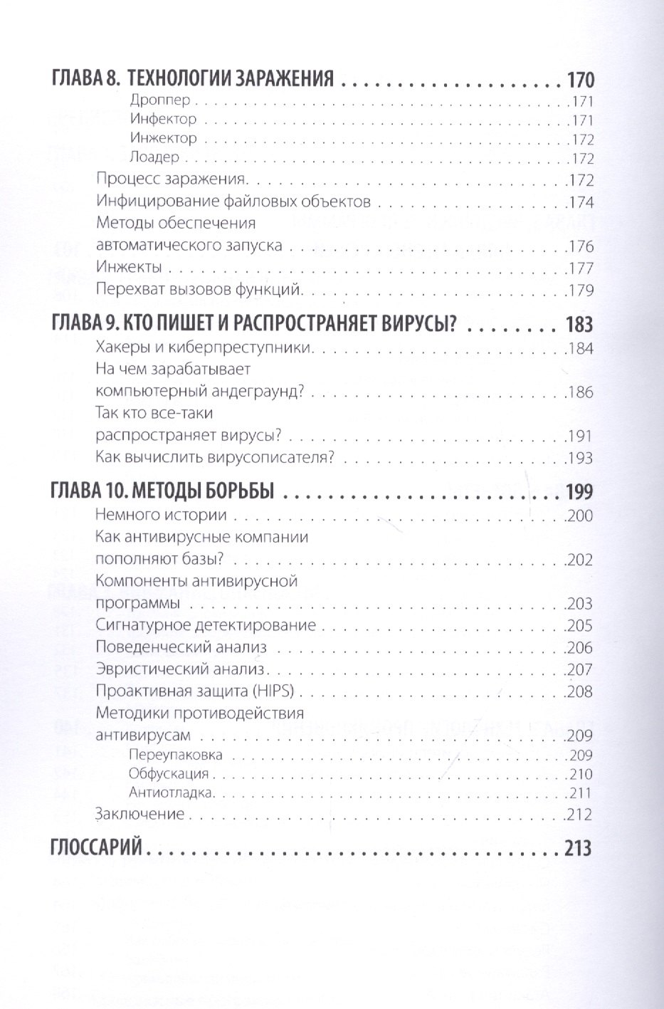 Книга рассказывает об истории возникновения и развития технологий компьютерных вирусов, их разновидностях, внутренней архитектуре, способах распространения и принципах действия. Книга позволит читателям познакомиться с таинственным теневым миром киберпреступности, представители которого ежедневно осуществляют атаки на компьютеры простых пользователей по всему миру.