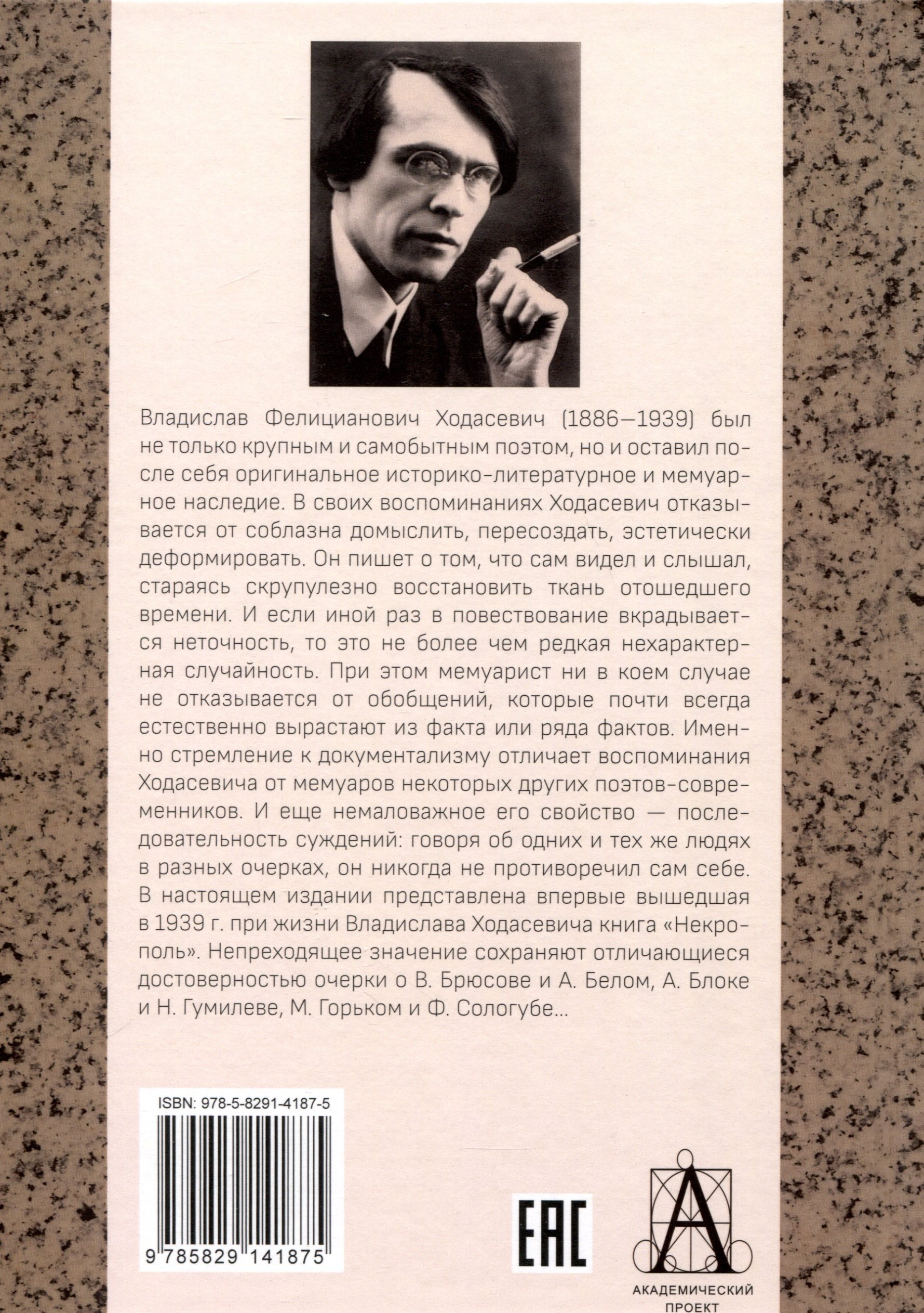 Социальный кризис конца 19 - начала 20 веков охватывал всю Российскую империю и нашёл отражение во всех видах искусства. На мой взгляд не случайно, что именно в этот период многоголосый хор гениев, безумцев и умельцев плести словесные кружева подхватил, понёс и подбросил литературу и писательскую критику на нереальную высоту. Количество литературных течений, объединений Серебряного века достаточно велико, а на меня иногда нападает желание приобщиться и упиваться. До этого читал Валентина Катаева - Алмазный мой венец , Анатолия Мариенгофа - Роман без вранья , Рюрика Ивнева - Серебряный век. Невыдуманные истории (рецензия), Олега Демидова - Анатолий Мариенгоф: первый денди Страны Советов (рецензия). "Некрополь" стоит особняком. Основной его идеей мне видится попытка проследить, как дух эпохи повлиял на судьбы его героев. При этом замечательно то, что позиция автора не над событиями, а внутри них. Ходасевич в самом начале труда уточняет, что писал только лишь о тех событиях, каким был свидетелем и не пересказывал что-то с чужих слов. Как мне показалось, он нарушил это правило лишь единожды в главе о Есенине, но об этом поговорим ниже. Идеализированное "Я" автора описываемого периода жизни не проскакивает - Владислав Фелицианович и себя вспоминает в разную пору при встречах с теми, о ком говорит.