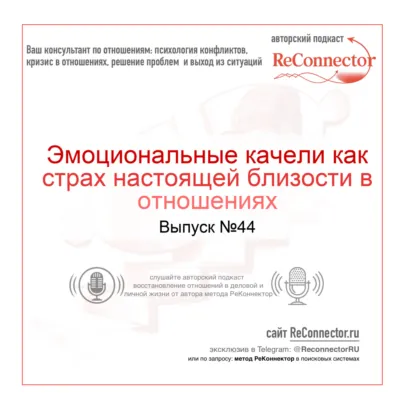 Разработанный мной Метод РеКоннектор и специальные Модели Отношений РеКоннектор помогают распознать манипулятивные паттерны эмоциональных качелей и понять истинные мотивы партнёра, скрывающегося за маской страха близости. Этот подкаст даст вам инструменты для осознания деструктивной динамики и принятия решения о дальнейшем развитии отношений.