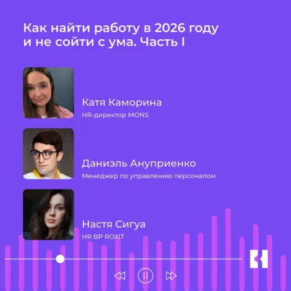 Катя Каморина, HR-директор компании MONS (ГК КОРУС Консалтинг), расскажет про общую ситуацию на рынке труда, Даниэль Ануприенко, менеджер по управлению персоналом, раскроет все тонкости в поиске работы, а Настя Сигуа, HR BP компании ROXIT (ГК КОРУС Консалтинг), раскроет психологический аспект вопросов поиска работы, то, что действительно поможет сохранять рассудок в этом непростом процессе.