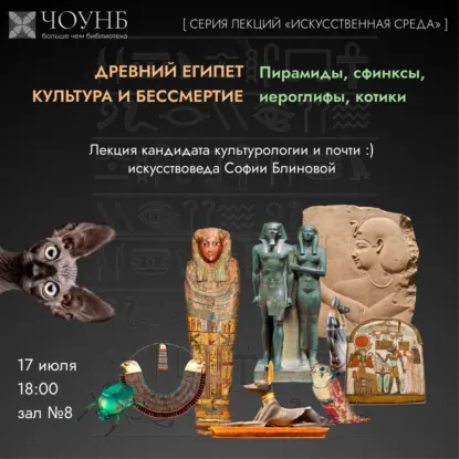 Сегодня в 18:00 в Публичной библиотеке пройдёт лекция о культуре и искусстве Древнего Египта. Её проведёт кандидат культурологии София Блинова.