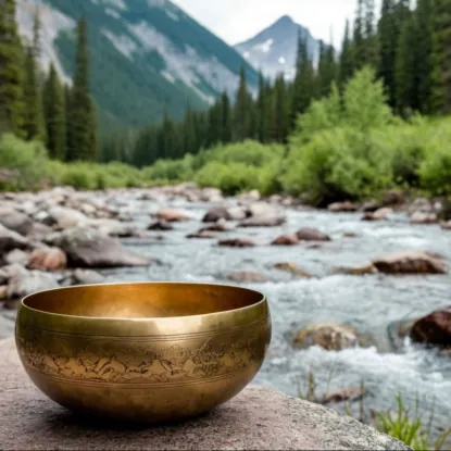 Основной контент книги Медитация с поющими чашами для очищения у горной реки